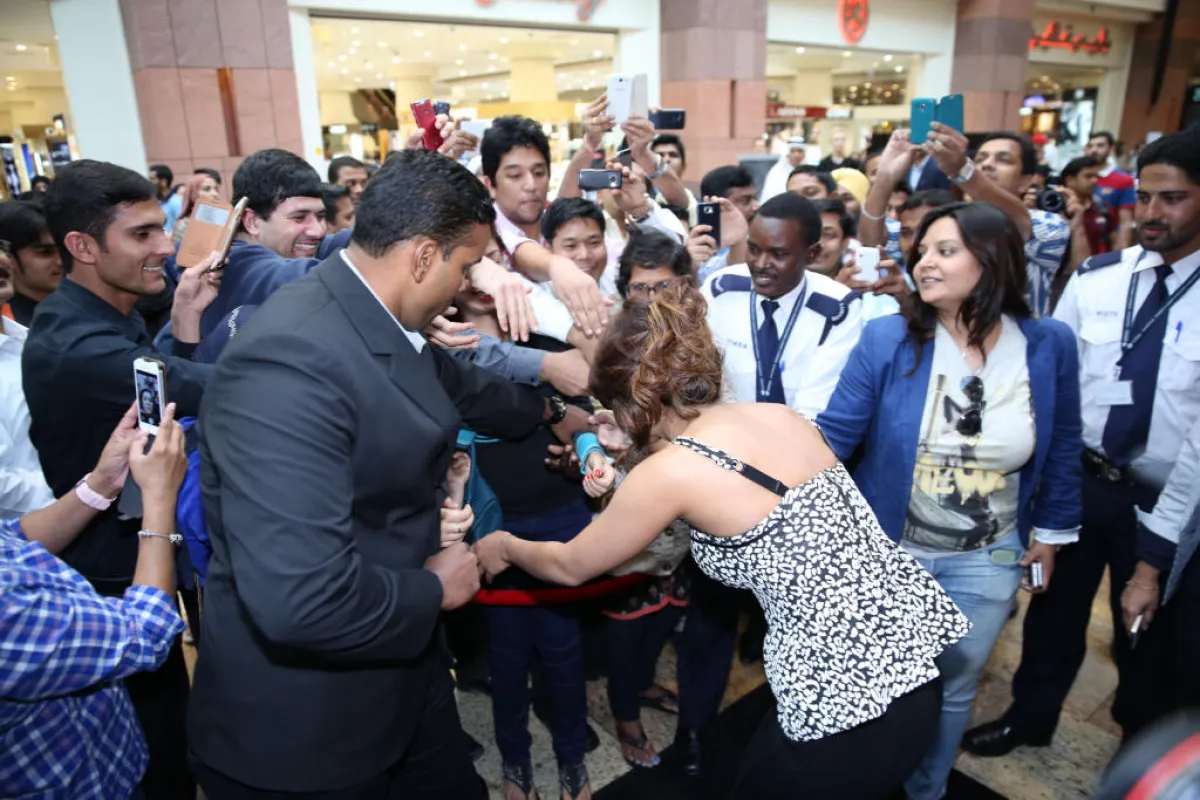 وبعد أن تجولت في المتجر وحضرت عرض الأزياء كانت تستعد للمغادرة بينما حاول الجمهور كسر الحواجز أمام المتجر للحاق بها والتقاط الصور معها ولم يستطيع رجال الأمن السيطرة على الموقف فقد تمكن الجمهور من الوصول إليها وهي تبتسم وتمازحهم فاضطر رجال الأمن أن يعودوا بها إلى المتجر لحين مغادرة الجمهور، لكن تلك المحاولة كانت بلا جدوى فلم ييأس الجمهور وبقوا ينتظرونها، فخرجت مرة أخرى في حماية الأمن يمسكون بها ويسرعون إلى البوابه فتكرر المشهد ذاته، وهو ملاحقة الجمهور لها، إلى أن وصلت باب المصعد فتسببت في ازدحام شديد في تلك المنطقة.