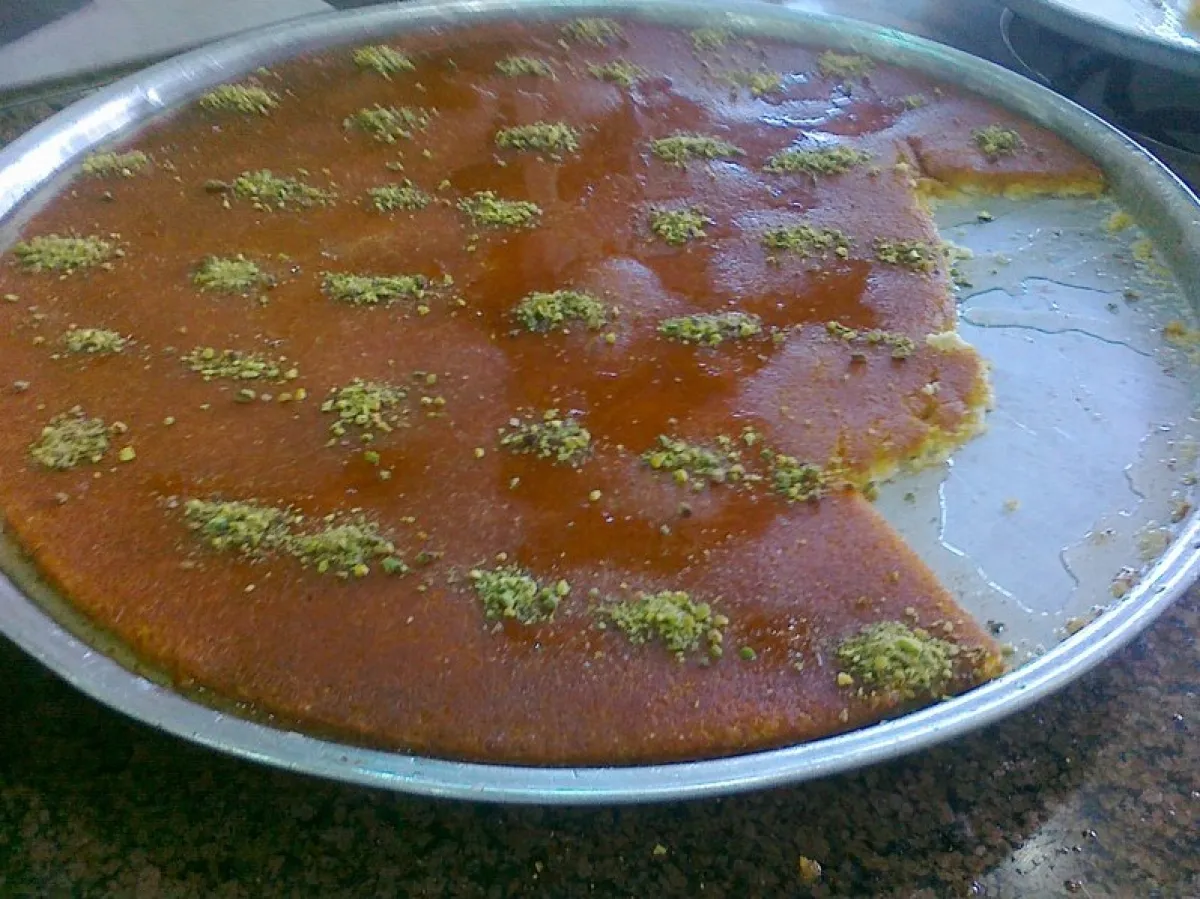 6-يُسكب القطر فوق الكنافة بالتساوي.