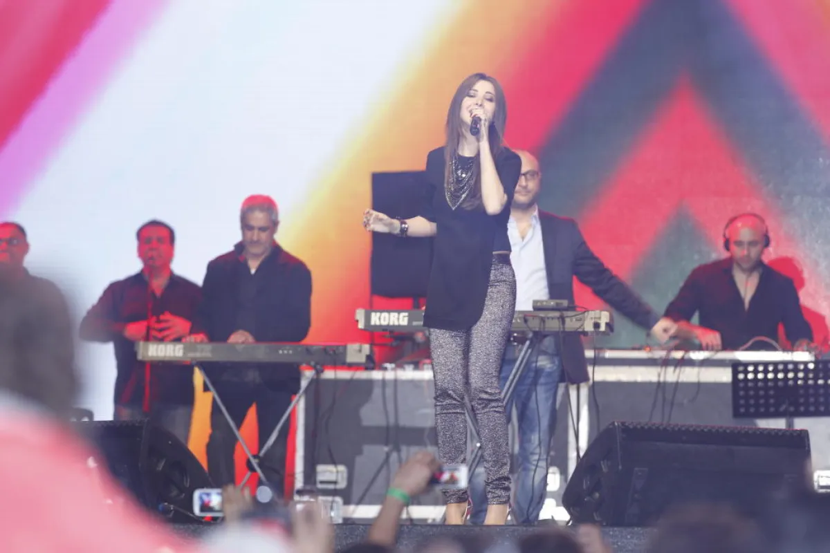 ثم صعدت نانسي إلى المسرح وبعد أن قدمت الأغنية الأولى حيت الجمهور وقدمت أشهر أغانيها التي يحبها الجمهور منها: شو واثق بحاله، ما تسأل علي، حبيبي قرب، وهي الأغنية التي أشعلت الحضور وأخذ يردد من ورائها "نص نص"، كما قدمت أغنية خليجية "مشتاقة لك"، وكعادتها على المسرح أخذت نانسي ترقص على الطبلة والمزمار، وبعدها كان في انتظارها مجموعة من الأطفال خلف المسرح لالتقاط الصور معها.