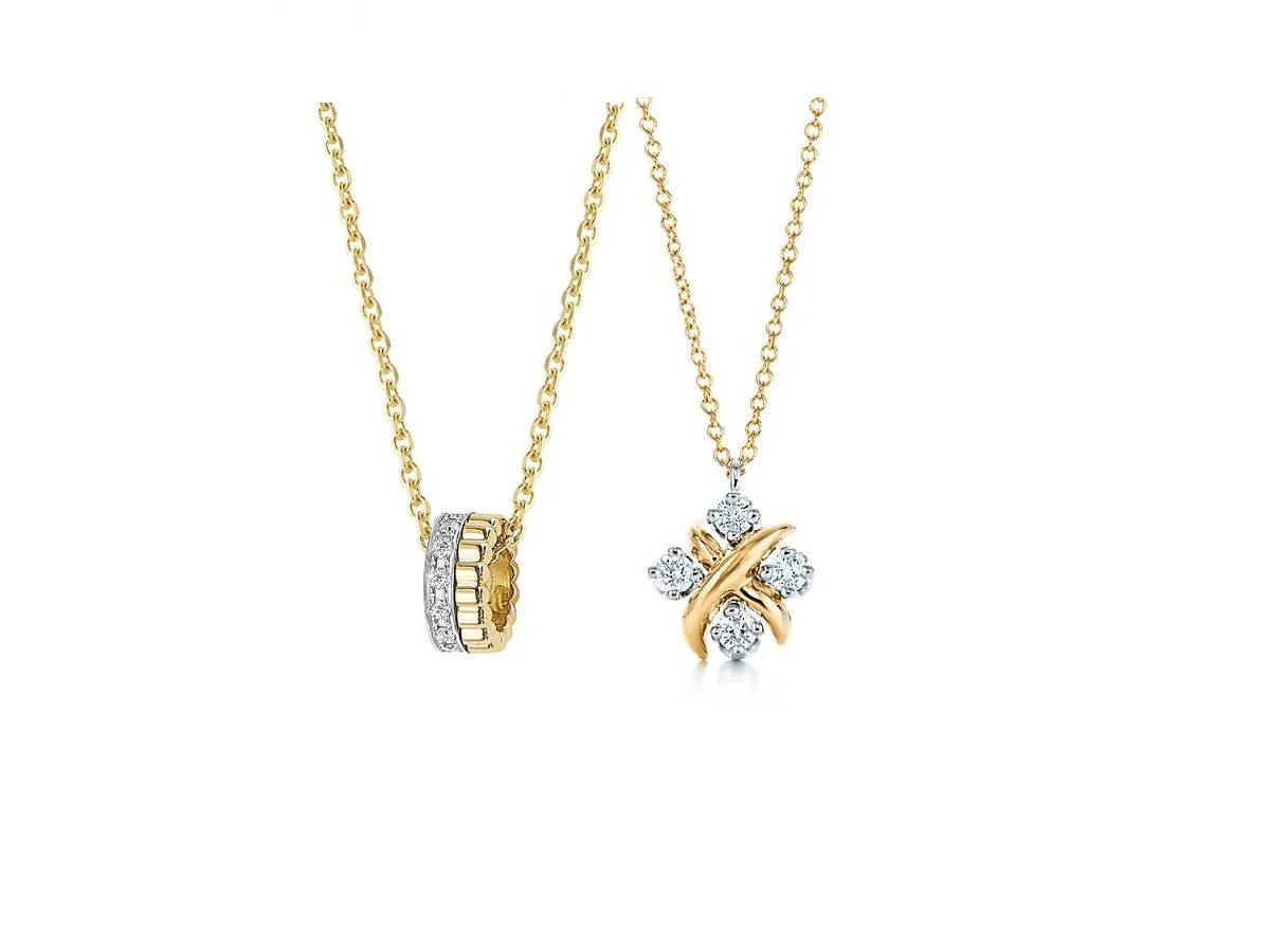 وفي آخر تصميم نرشح لك هذه القلادة من دار تيفاني آند كو Tiffany&Co حيث تعد إبداعات جان شلمبرجير ذات الرؤية المستقبلية من بين أكثر التصاميم شهرة وأناقة في العالم؛ هذه القلادة الرقيقة المصنوعة من الذهب الأصفر عيار 18 قيراطًا مع البلاتين والماس الدائري اللامع.