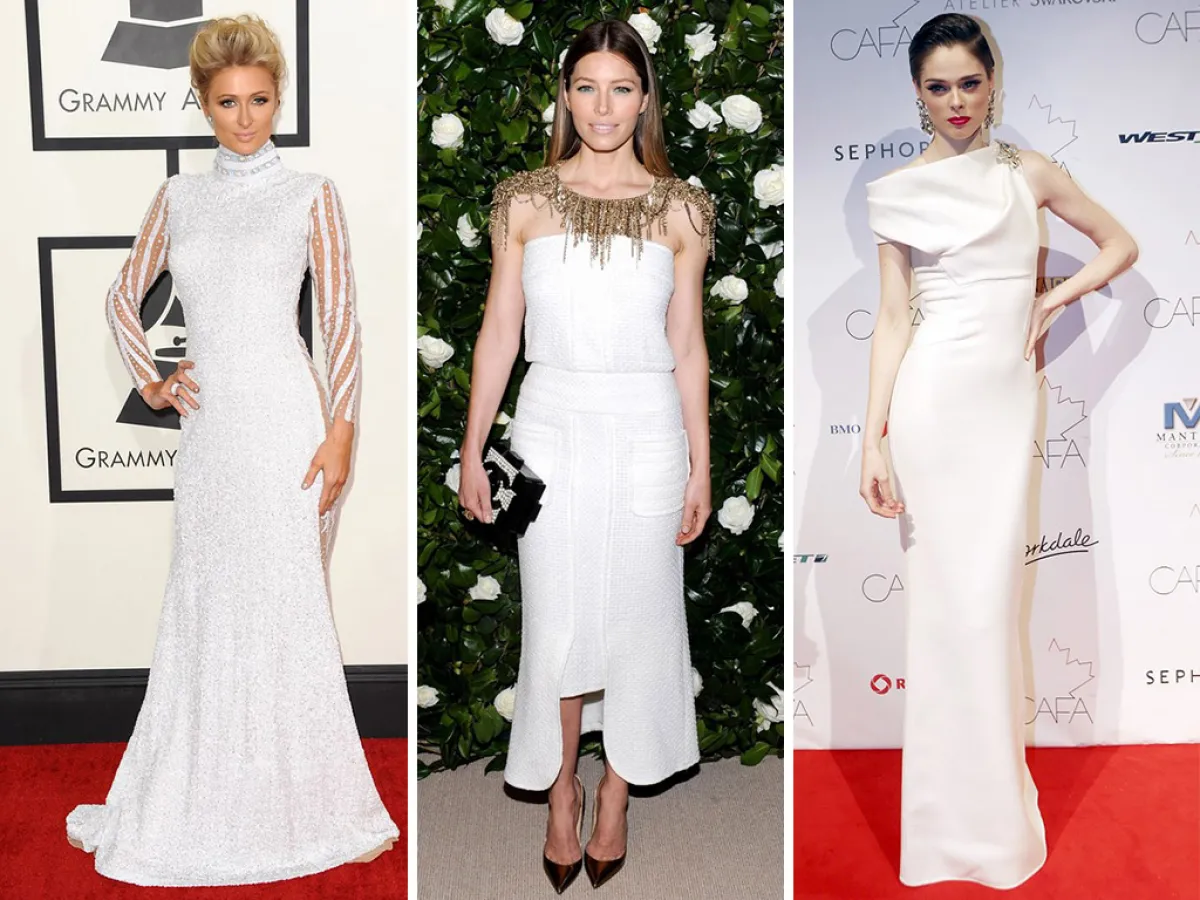 تلجأ النجمات في كثير من الأحيان إلى اللون الأبيض وتدرجاته الرائقة من أجل الحصول على طلة تجمع ما بين الشبابية والمرح من جهة، والترف والرفاهية من جهة أخرى، خصوصاً عندما تطأ أقدامهنّ السجادة الحمراء، ويجدن أنفسهن تحت أضواء الكاميرات وعيون النقاد. ولذا، قد لا يمرّ أيّ حدث فني من دون أن نرى اللون الأبيض سيّد الساحة. ويمكن أن نشير هنا إلى إطلالات النجمة Naomie Harris، وهي أكثر النجمات حباً لهذا اللون، خصوصاً مع اختياراتها المنتقاة التي تحمل توقيع مصمّمين كبار، مثل Naeem Khan وMarni، وكذلك النجمة Jennifer Hudson التي عادة ما توازن هذا اللون مع لون بشرتها السمراء وشعرها الأسود. أمّا النجمة Mariah Carey فإنها قد كسرت القاعدة، وظهرت في عيد الحبّ الأخير بفستان أبيض مزيّن بالفرو بدلاً من اللون الأحمر الشائع، ولسان حالها يقول: "من قال إنّ اللون الأحمر هو وحده لون الحبّ!". من جانب آخر، فإنّ Lady Gaga التي عرفت بصرعاتها البراقة وجنونها اللونيّ قد وجدت في اللون الأبيض محطة هدوء واستراحة، واختارت فستاناً مسائياً مزيّناً بحزام فضيّ بتوقيع Alexis Mabille. ونتوقف أخيراً عند نجمة المجتمع Paris Hilton التي تعشق الطلات المترفة. ويبدو أنّ اللون الأبيض يحقق لها ما تريد، وقد تابعناها مؤخراً وهي تطلّ بفستان باذخ مزيّن بالكريستال وأنيق بخامته المميزة، وقد كان يحمل توقيع من Polo.