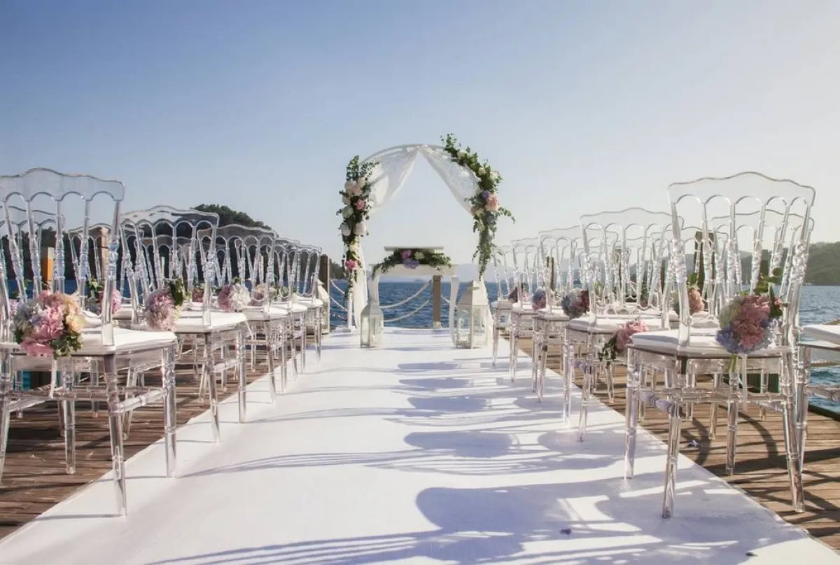 الاعتماد على خامة الخشب في تصميم حفل الخطوبة على الشاطئ