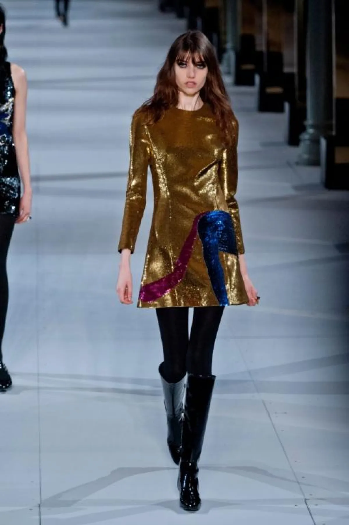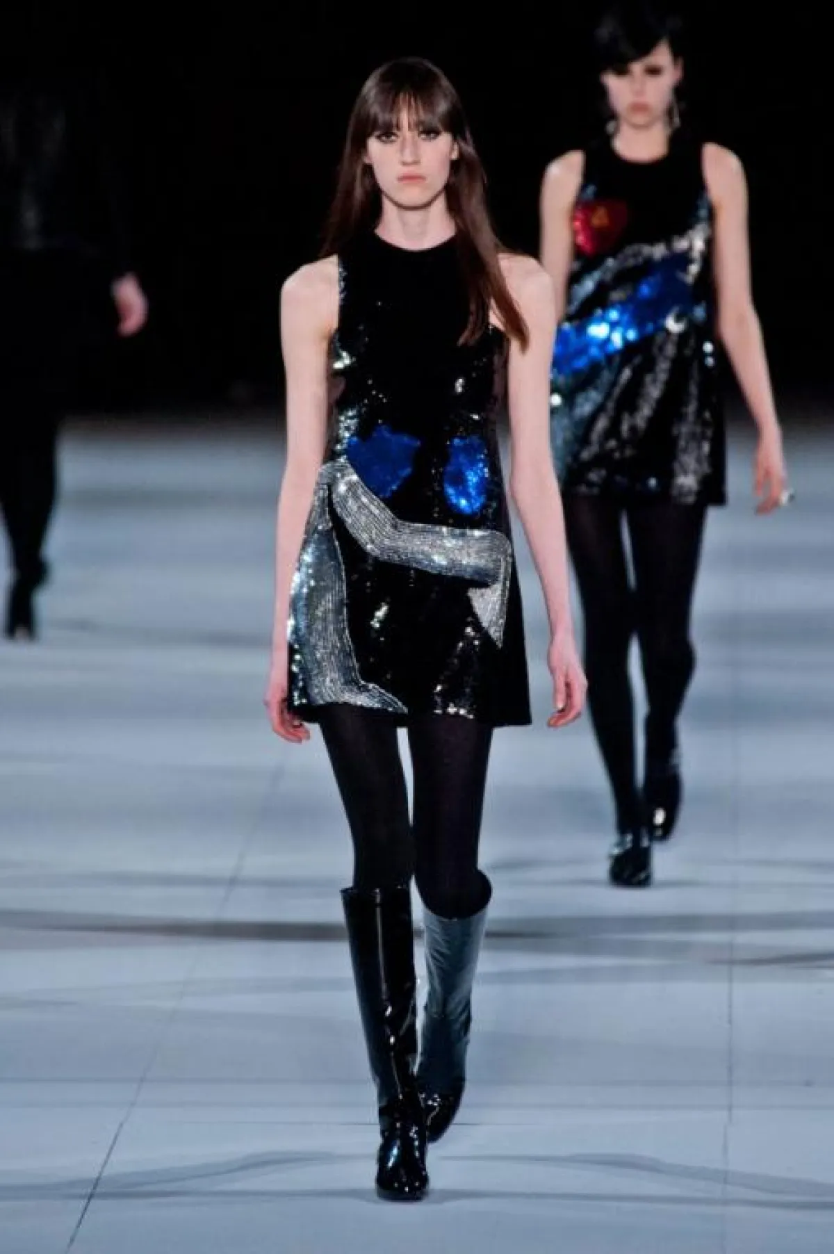 ركّز هادي سليمان كثيراً في عرضه هذا على الأقمشة اللامعة التي طغت على العرض، وعلى قماش اللوركس (Lurex)، كما أبدع في تصميم الجاكيتات والمعاطف الشتوية المصنوعة من الفرو الملوّن والمطبّع باللونين الأبيض والأسود.