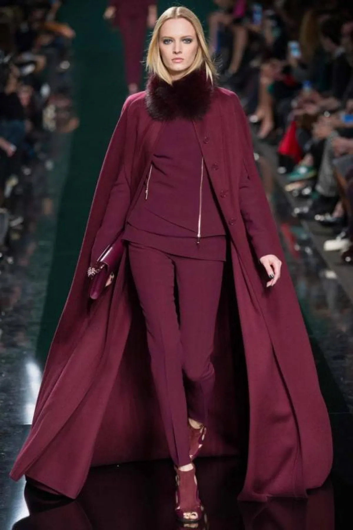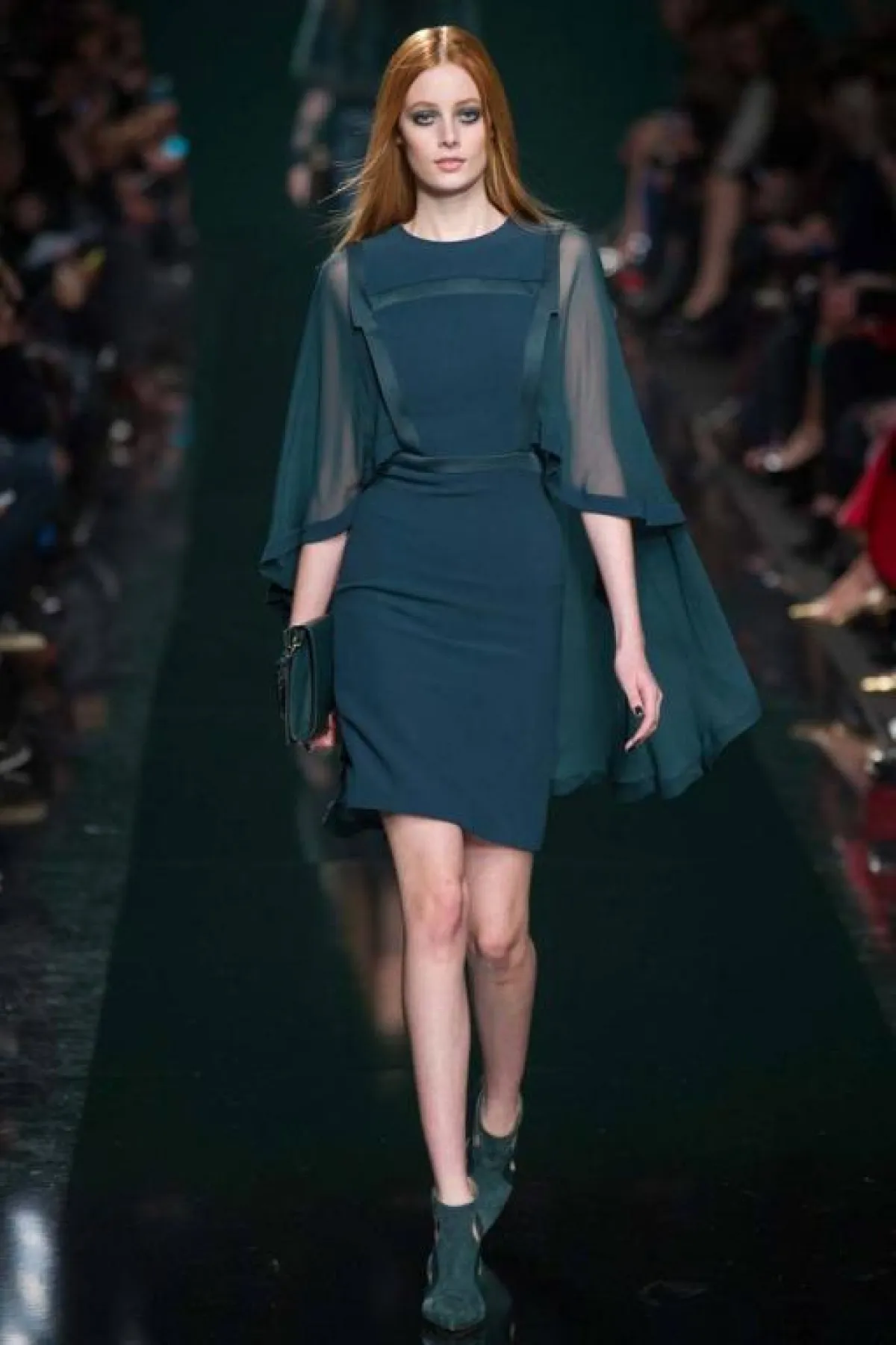 كان عرض إيلي صعب مترفاً كعادته، بتركيزه على الأقمشة المخمليّة والمطرّزة بالترتر والمرصّعة بالأحجار اللامعة. أكّد إيلي صعب مرة أخرى إمضاءه ولمسته، بواسطة القصّات، التي جاءت أنثوية للغاية، وقريبة من الجسم، مع فتحات كبيرة على مستوى الظهر. أما جديده في هذا الموسم فهي الألوان، التي جاءت داكنة وغامضة وتُخفي أناقة مترفة، وكان منها الأخضر الزمرديّ والأسود العنّابي والزهري الفاتح ولمسة من الأسود. حتى الأقمشة المطبّعة جاءت غامضة ذات أساس أسود، وتعكس أناقة مسائيّة زادت من رومانسيّتها الأقمشة المخمليّة والمطرّزة بالخرز والترتر.