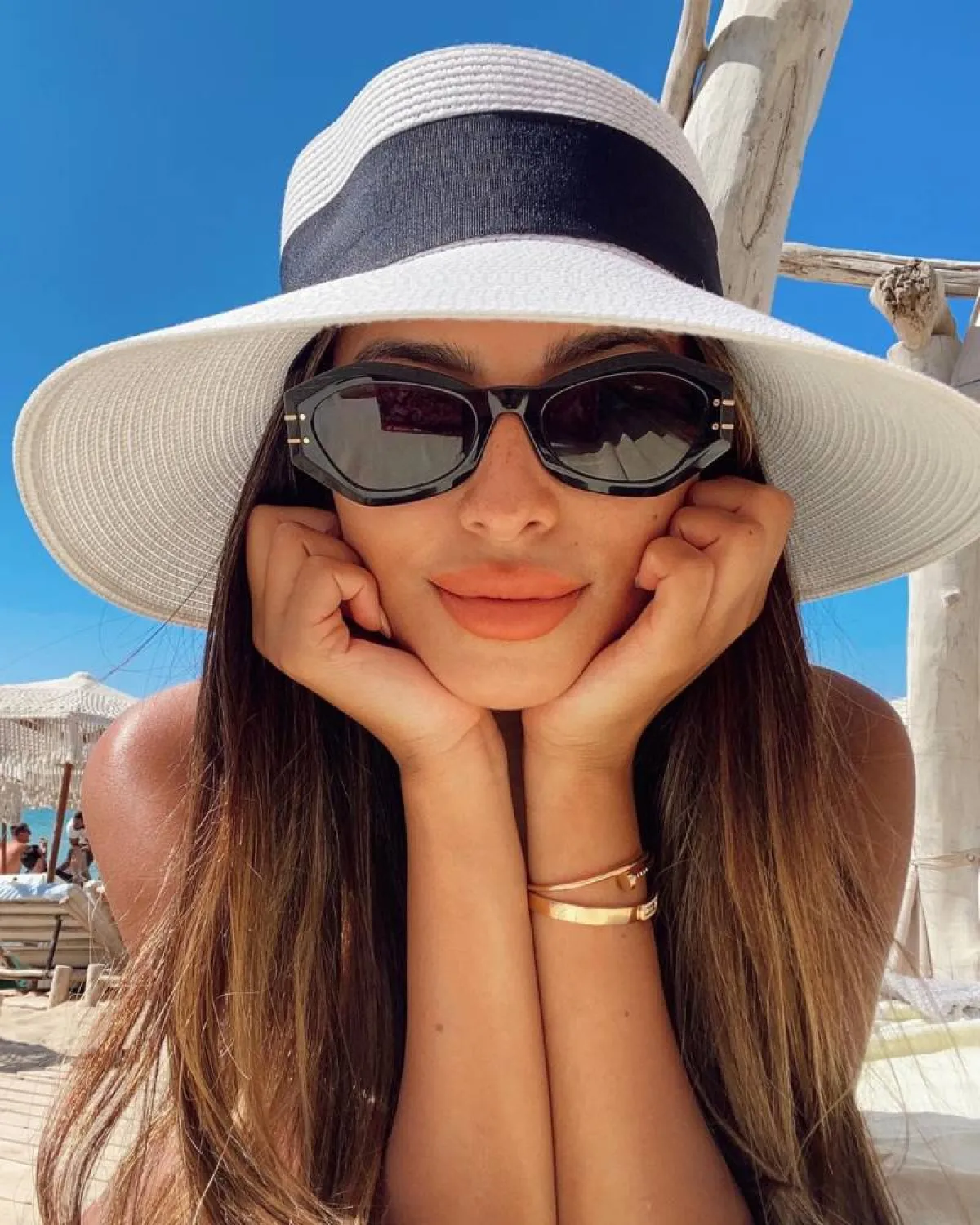 لإطلالة نهارية بسيطة تناسب أوقات الصيف يُمكن اعتمادها على شاطئ البحر، ظهرت لما العقيل على شاطئ البحر بأساور ذهب أصفر رفيعة، بتصاميم عصرية ناعمة، حيث اختارت سوار ذهب أصفر من مجموعة Juste un Clou الراقية من دار كارتييه Cartier، ونسقته مع سوار ذهب أصفر بتصميم بسيط وناعم يناسب أجواء الشاطئ.