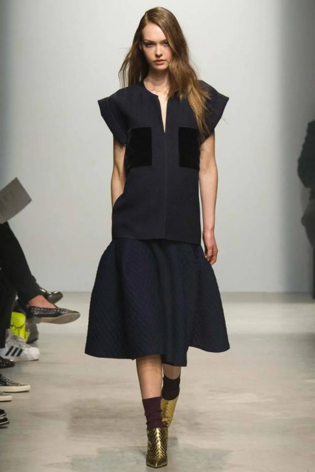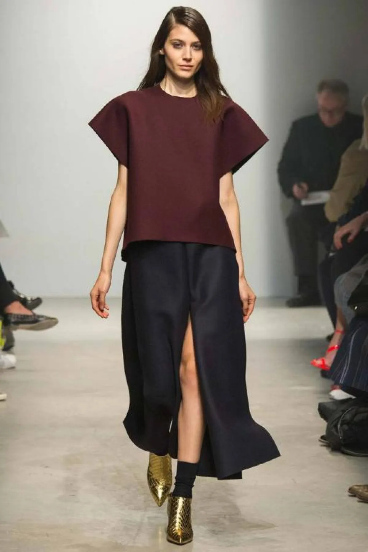 وتنوعت تصاميم المجموعة بالتنانير ذات القصّة المستقيمة والشق الطويل، من الأمام والخلف والجنب. هذا الشق الذي جعل هذه التنورة تبدو كسروال، إضافة إلى موضة التنانير ذات القصّة الواسعة Flared المنسّقة مع التوب بالقصّة الكبيرة، التي تصل حدّ الركبة، كما التنانير بقصّة الشقّ الأماميّ.
