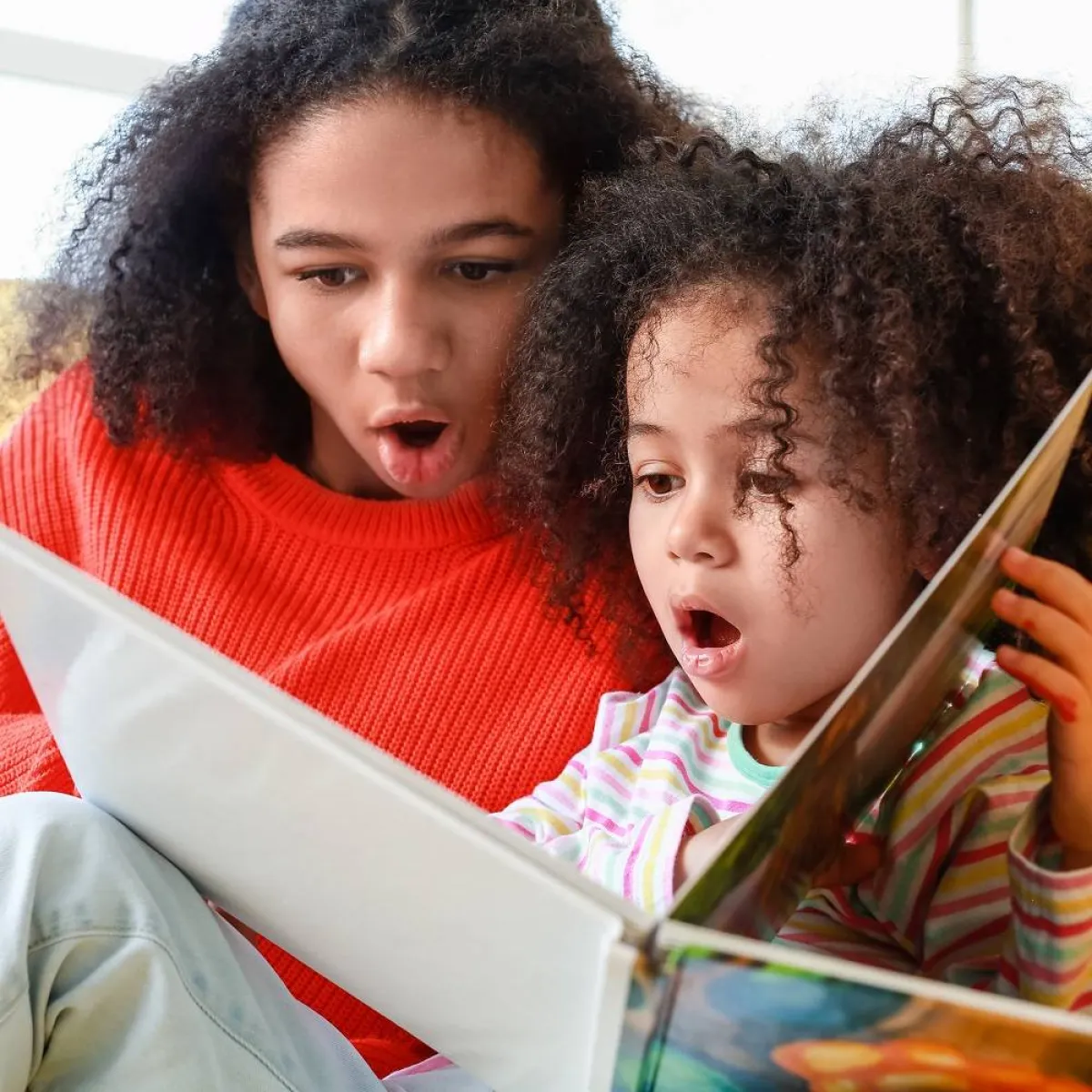 طالبة بصف أعلى تقرأ للطالبة الجديدة