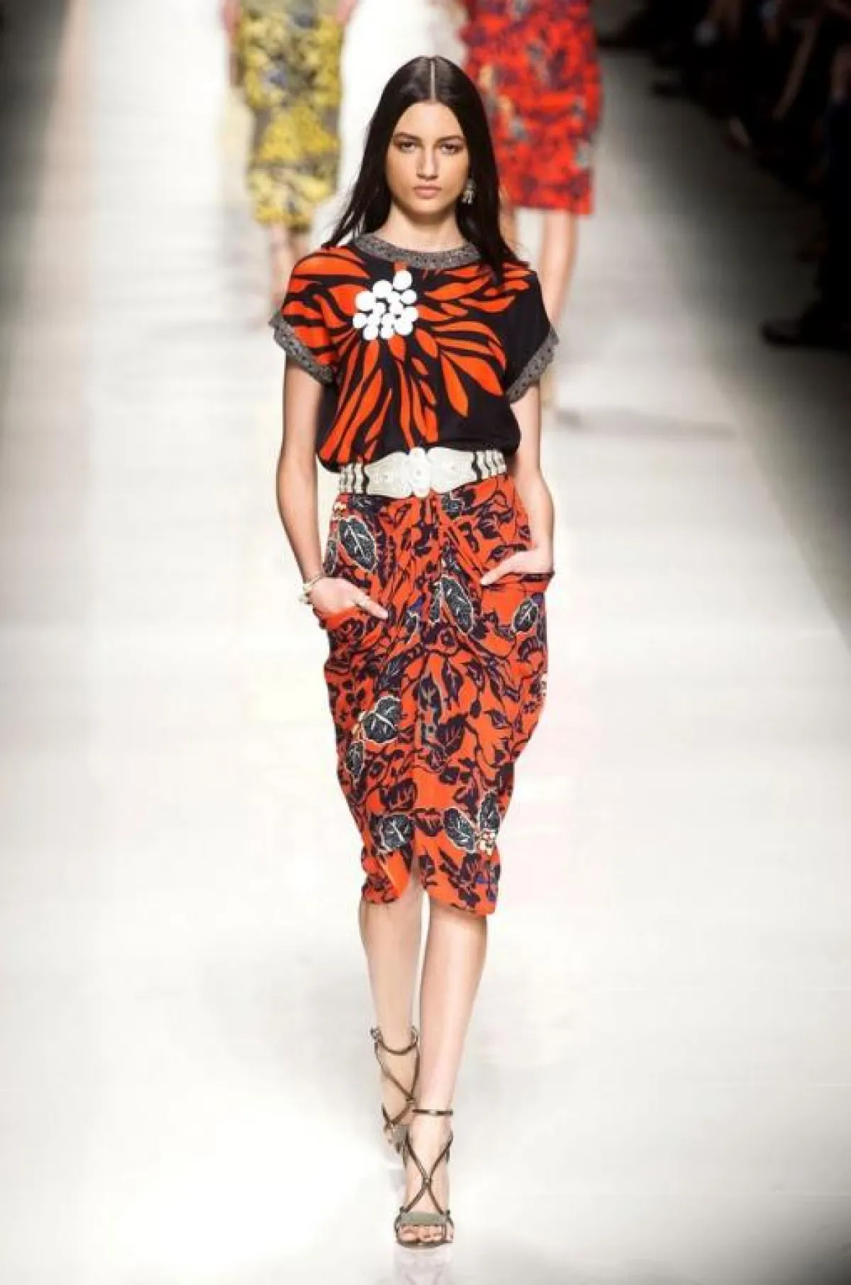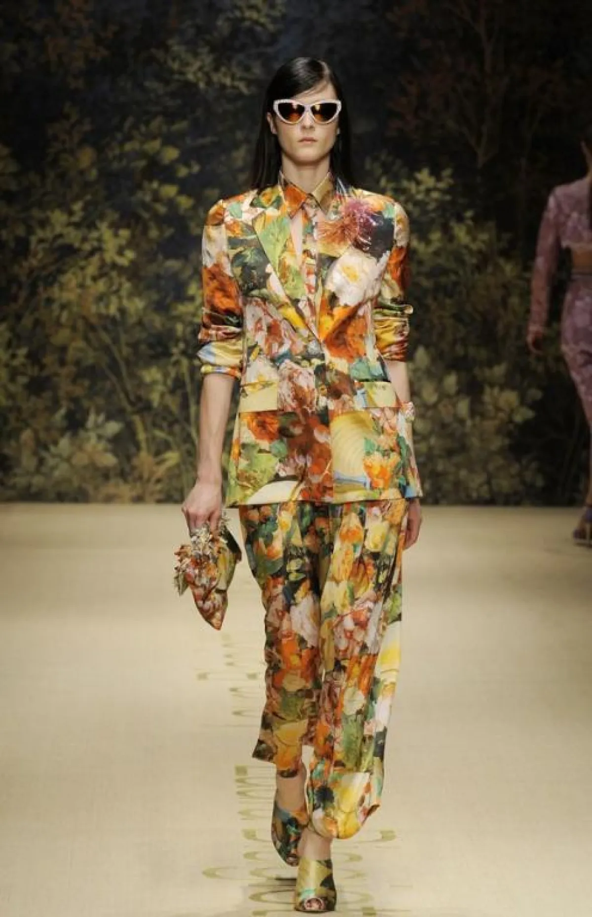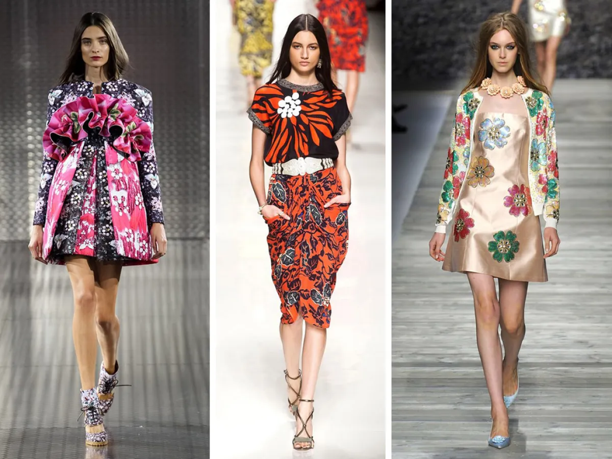 ثمّة عبارة إنجليزية شهيرة تقول: "قل ما عندك ..مع باقة زهور" (Say it with flowers)، في تشديد على أهمية الزهور في تهدئة النفس وإنعاش الروح. ويبدو أنّ المصممين قد ترجموا هذه المقولة أحسن ترجمة، من خلال ما قدّموه لموسمي الربيع والصيف من ثياب واكسسوارات مزيّنة بزهور القرنفل والأوركيد والجوري والنرجس والقرنفل. وقد رأينا هذه الزهور صريحة وواضحة، كما في عرض Mary Katrantzou، أو على شكل تزيينات مفضّضة وبارزة، كما في عرض دار Burberry، التي قال مصمّمها كريستوفر بيلي: "الزهور رقيقة وحسّاسة، وكذلك المرأة"، أو على هيئة تطريزات بارزة بخيوط الحرير، كما في عرض دار Blugirl. أما Christopher Kane فإنّه قد بنى مجموعته أساساً على زهرة الأوركيد، التي زيّنت الفساتين والقمصان والتنّورات في حين حوّل المصمّم Oscar de la Renta فساتين السهرة إلى ما يُشبه زهريّات الورد. ويُمكن القول إنّ الزهور ستكون من أقوى ملامح هذا الموسم، وستظهر في "فترينات" العرض بكلّ أشكالها وألوانها، سواء الطازجة التي تبدو وكأنها قد قطفت للتوّ من بستان الزهور، أو الباستيلية، أو المرسومة على خلفية داكنة، لتنقل لنا مزاج حدائق الزهور في منتصف ليل صيفيّ رائق. ونلاحظ أيضاً أنّ بعض المصمّمين قد ذهبوا بعيداً، واستخدموا تقنية الأبعاد الثلاثيّة المجسّمة 3D، من أجل الحصول على طلة رومانسيّة تُشبه تبرعم الزهور تحت وهج الشمس.