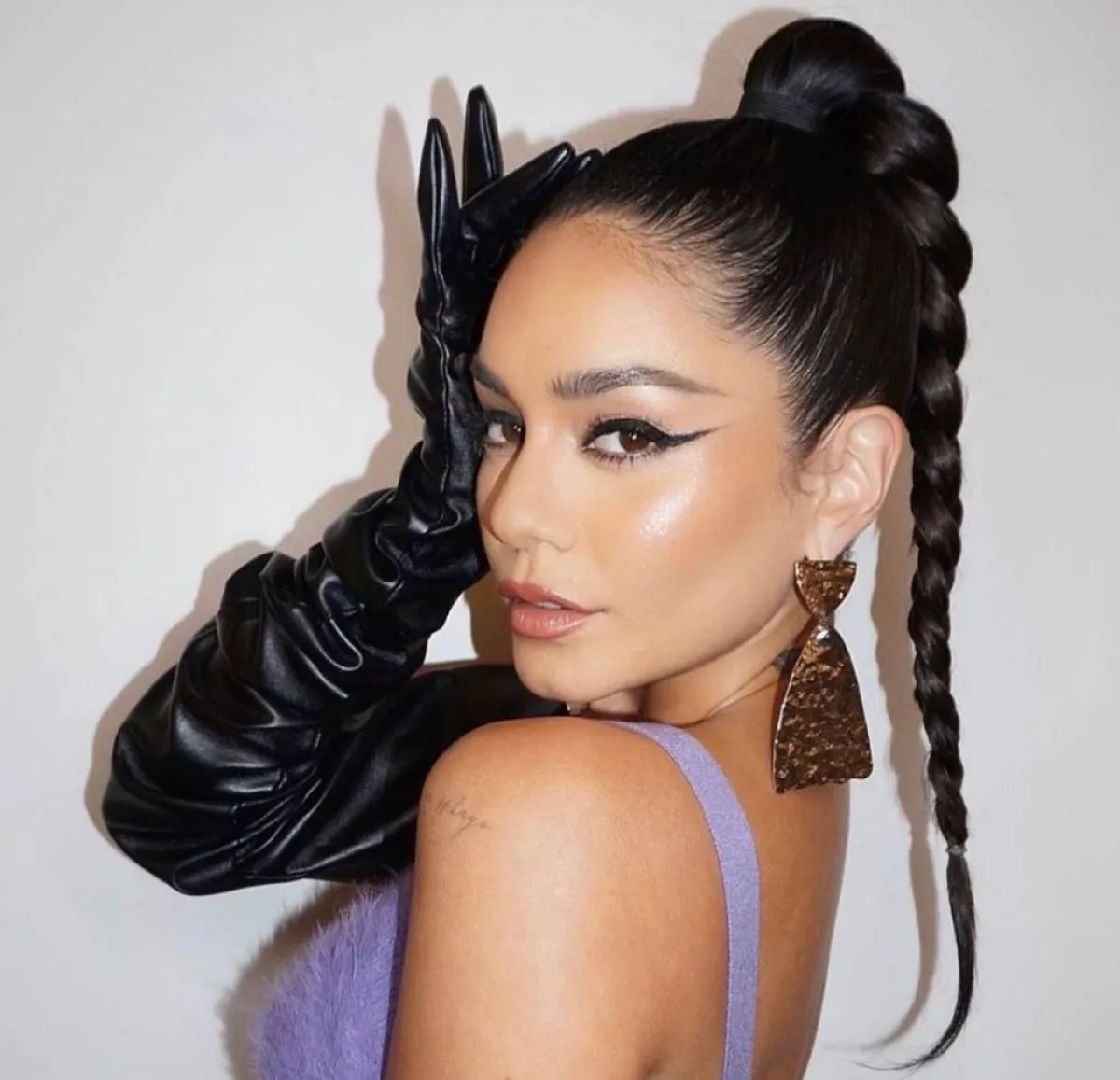جمعت النجمة فانيسا هادجنز في إحدى إطلالاتها، صيحة المكياج البنفسجي والمكياج المعدني في الوقت نفسه، بطريقة عصرية لافتة، حيث اختارت مكياج عيون معدنياً باللون البنفسجي الغامق، الذي ارتكز على تمرير الظل البنفسجي الداكن فوق الجفن العلوي، ومزجه مع ظل العين البنفسجي المعدني، مع جعل الظلال مسحوبة قليلاً الى خارج العين.