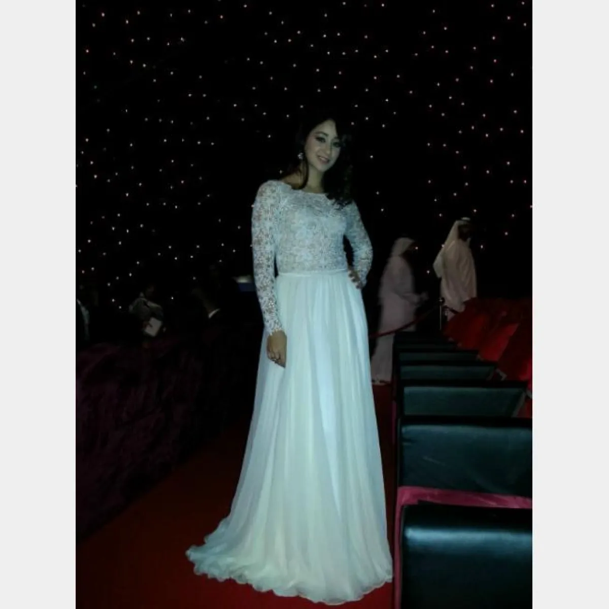 أما في السهرات فتميل النجمة إلى اختيار التصاميم الناعمة بألوان فاتحة وأنيقة كالفستان الأبيض من المصممة عائشة رمضان الذي ارتدته في مهرجان دبي السينمائي، وفستان آخر بلون وردي جذاب وتصميم مميز وأنيق في نفس المهرجان.