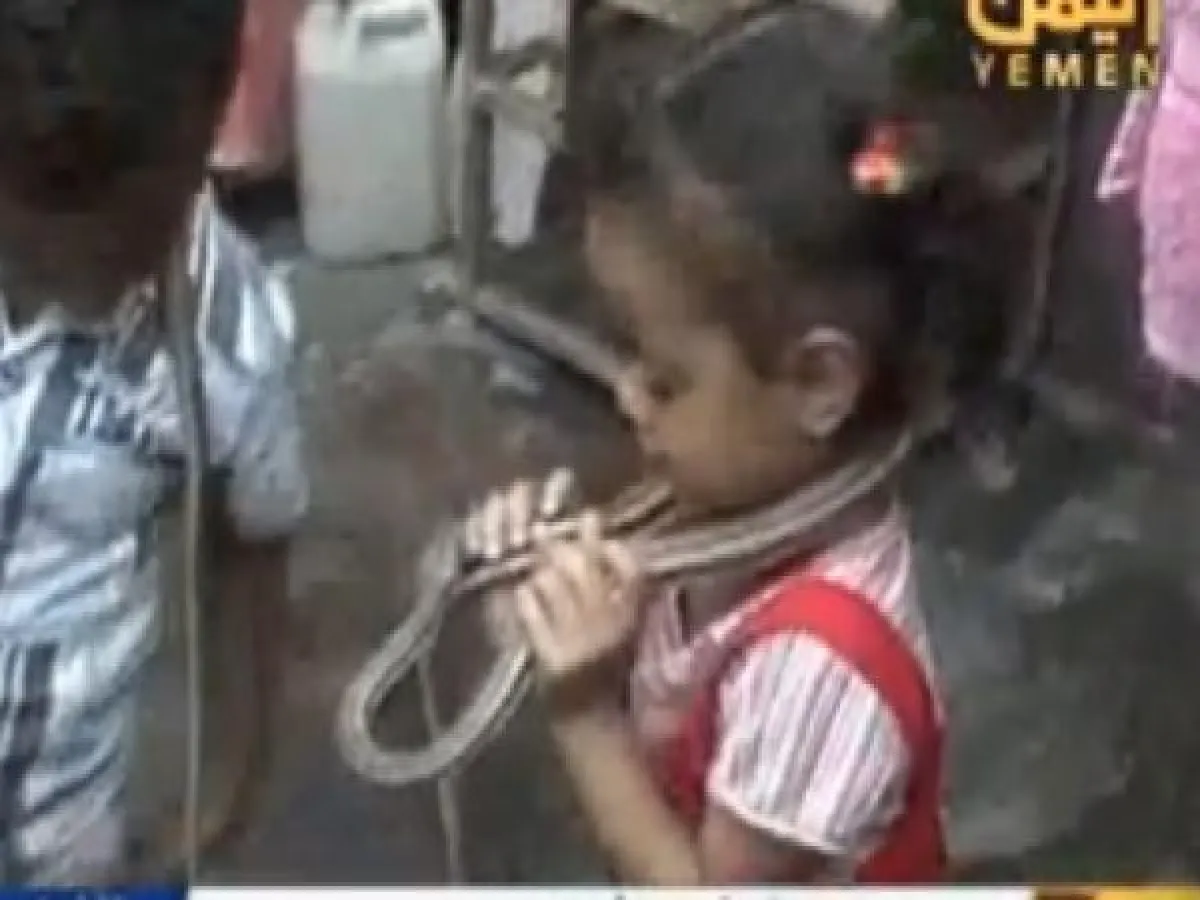 أظهر مقطع فيديو بثته القناة اليمنية مجموعة من أفراد أسرة يمنية في محافظة الحديدة وهي تعيش مع عدة أفاعِ في منزلها متخذة منها مصدر رزق لدر الدخل على العائلة.