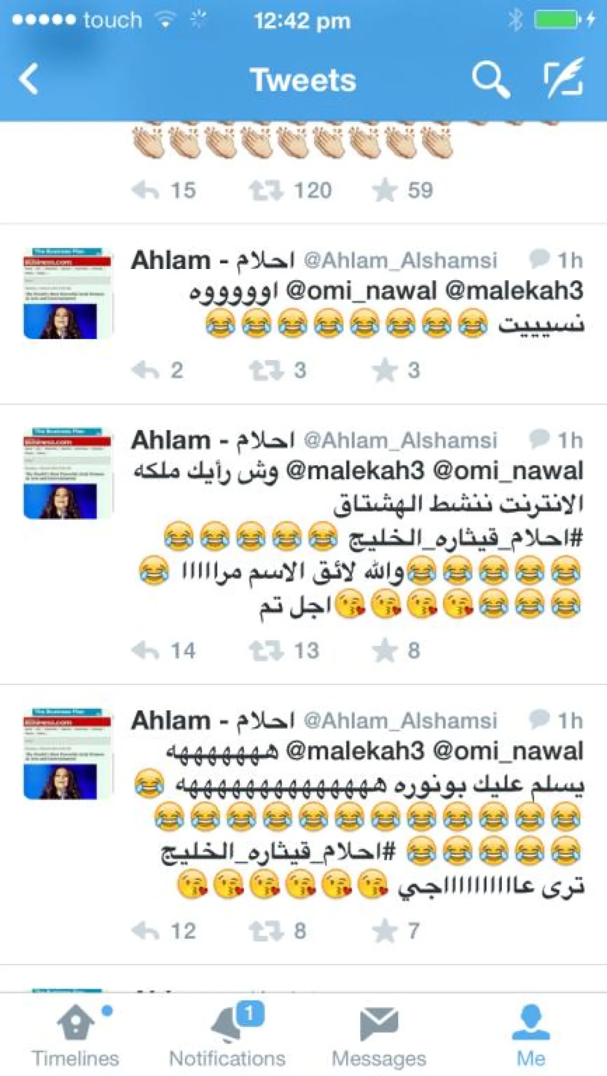 وكالعادة، رفضت نوال الرد على اتصالات الصحافيين، ولم تكتب شيئاً على صفحتها الشخصية في "تويتر"، تعليقاً على تصريحات أحلام، في وقتٍ تولّى جمهورها المتحيّز لها بشكل مطلق مهمة الدفاع عنها، وبدأ بانتقاد تصريحات أحلام. وزادت الوتيرة بين أحلام وجمهورها في مواجهة جمهور نوال، الذي ردّ على الأولى بأنّ فنّانته المفضّلة هي فنانة العرب وقيثارة الخليج وفيروز الخليج وملكة الكلاسيك، بعد أن وضعت أحلام هاشتاغ "أحلام قيثارة الخليج"، برغم أن هذا اللقب كان لسنوات طويلة لنوال التي تمّ تقديمها مؤخّراً في "سوق واقف" بصفتها فنانة العرب، وهو ما يبدو أنّه أثار حفيظة أحلام، التي أكّد جمهورها أنّ لقب قيثارة الخليج أصبح ملكاً لهم.
