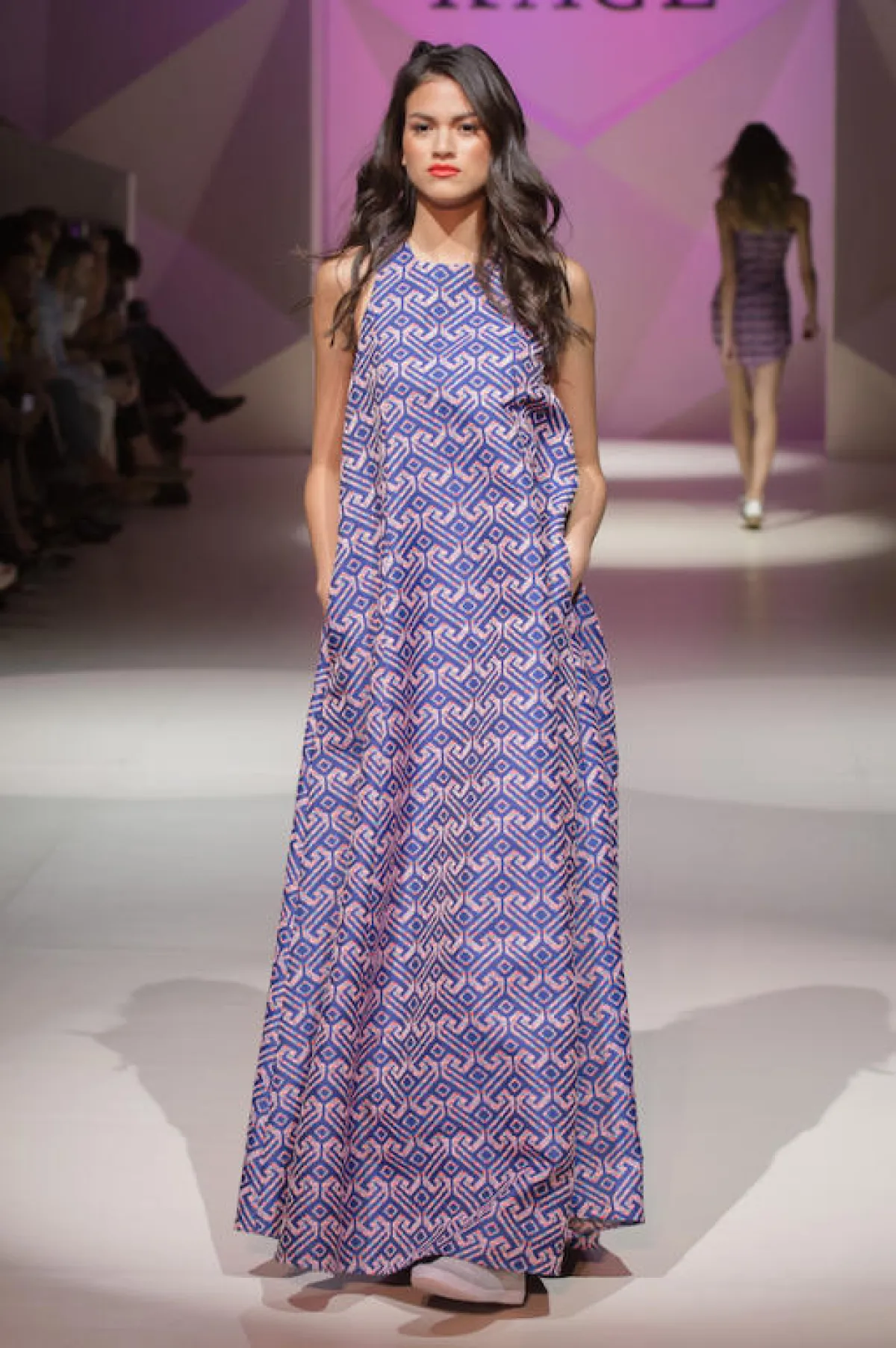 بدا التآلف الدائم بين "KAGE" والأقمشة الخام واضحاً في هذه المجموعة من خلال تصاميم عابرة للزمن قوامها أقمشة متناغمة مع ملمسها كثنائي مفعم بالحيوية، ولم تكتفِ المصممتان باستعارة أمواج البحر، بل نقلتا ألوانه الخلابة بتناسق مدروس مع التصاميم البحرية، فالألوان في هذه المجموعة منعشة تبدأ من الأزرق المركز وصولاً إلى الأحمر البرتقالي الذي يحاكي غروب الشمس، وبسلاسة اندمجت الأقمشة المطبوعة بتصاميم بحرية ملونة بالأحمر، والأزرق، والبنفسجي، والأسود المخطط مع الألوان الأحادية المركزة.