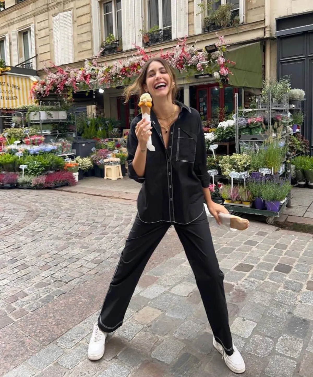 وفي إحدى مشاويرها الخاصة، ظهرت نور بتصميم البيجاما العصري باللون الأسود وقد بدت إطلالتها شبابية ومنتعشة، نسّقت معها نور حذاء رياضياً باللون الأبيض.