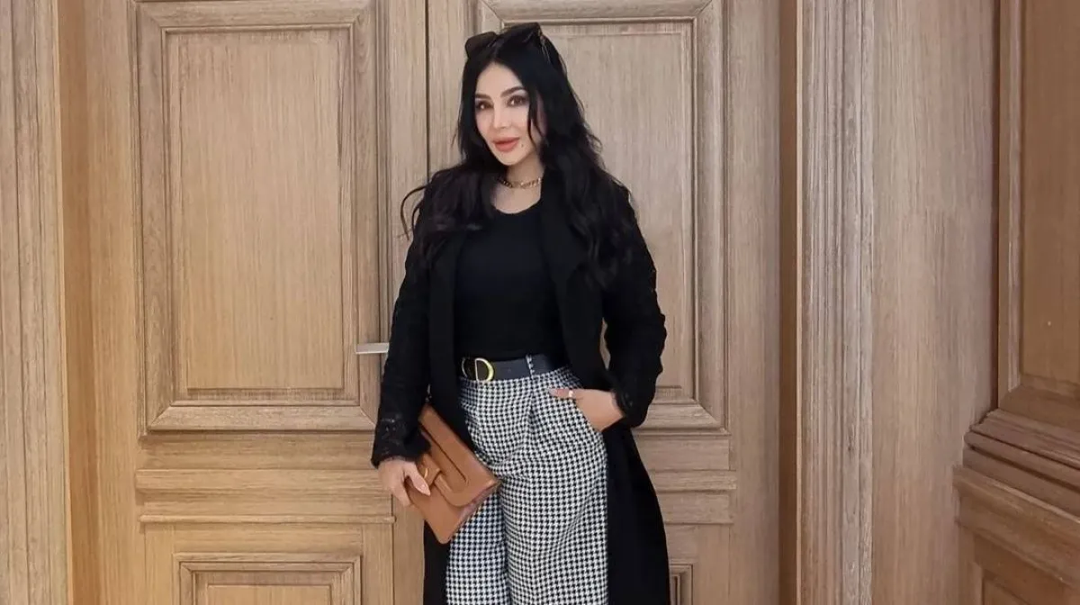 أعجبتنا هذه الإطلالة من وحي الإعلامية لجين عمران؛ حيث ارتدت معطفاً طويلاً باللون الأسود، ونسَّقت معه بلوفر باللون الأسود وسروالاً قصيراً كاروهات بجيوب جانبية واسعة، وحزام جلد عريض باللون الأسود، وانتعلت بوت طويلاً حد الركبة باللون البني بكعب رفيع، وحملت حقيبة يد كلاتش باللون البني.