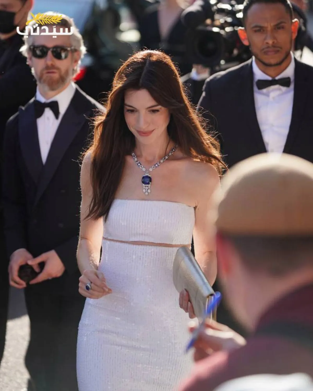 خطفت النجمة آن هاثاواي Anne Hathaway العيون في ظهورها الأول خلال مهرجان كان السينمائي الدولي، حيث بدت مثل الأميرات بفستان أبيض ماكسي من دار جورجيو أرماني، نسقته مع عقد فاخرمن دار بلغاري Bulgari أُطلق عليه اسم Mediterranean Reverie . صُمم العقد من حجر ياقوت أزرق بلون البحر الآخاذ، وصل وزنه إلى 107.15 قيراطاً وجاء بقطع الكوشون "الوسادة"،و كشفت دار بلغاري أنه مُستخرج من سيريلانكا.