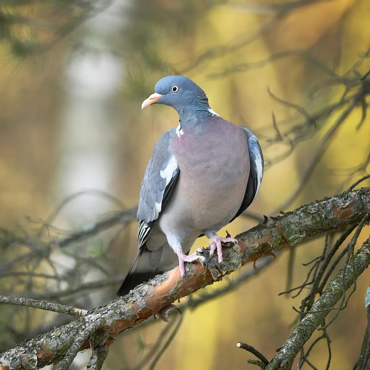 زوج الحمام يجمعان البذور