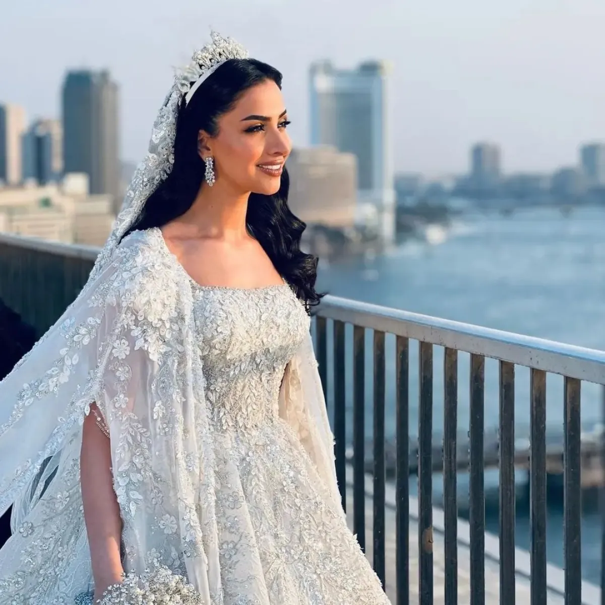 وخطفت نبيلة الشاعري، الأنظار بعدما خضعت لجلسة تصوير رسمية بفستان الزفاف قبل بدء الحفل بدقائق قليلة، وقدمت نبيلة هدية مميزة لوالدها تحمل كلمة "بابا" ثم رقصا معاً ليقبل الأخير يديها أمام الحاضرين.