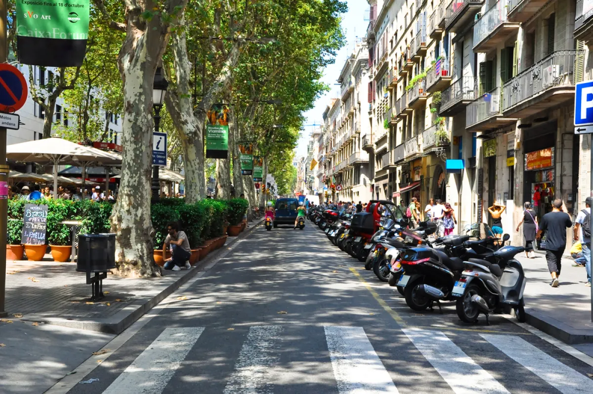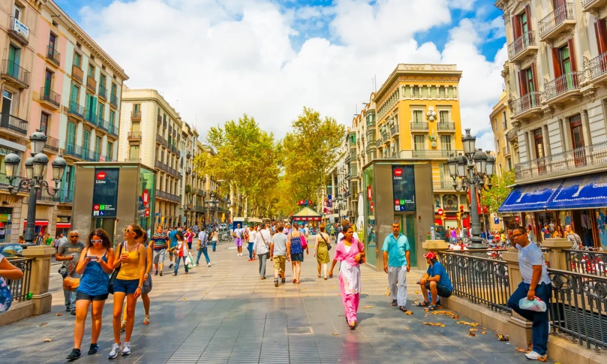 ويعدُّ "لا رامبلا" الشارع السياحي الأكثر شهرةً في برشلونة، وهو يمتدُّ على مساحة 1.2 كيلومترًا؛ تصطفُّ المقاهي ومحلَّات الأزياء وأكشاك بيع التذكارات على جانبيه.