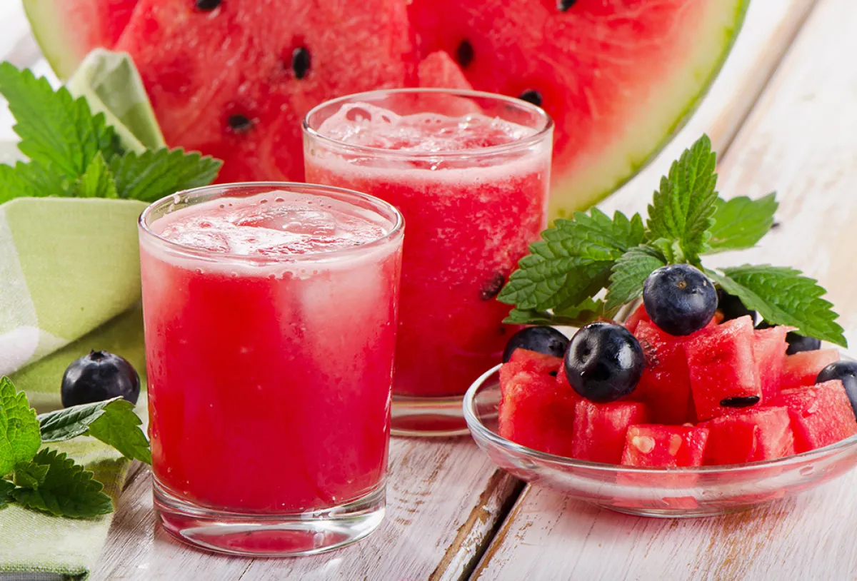 - عصير الليمون والبطيخ: رغم غرابة المكونين معاً، يعتبر البطيخ والليمون من أهم العناصر المفيدة جداً في حرق الدهون والتخلص من سموم الجسم، فالبطيخ يحتوي على الألياف الغذائية التي تساعد على التخلص من الشعور بالجوع، كما يساعد على تعويض الجسم بالسوائل وحمايته من الجفاف، أما الليمون فيضفي الانتعاش ويساعد على إنقاص الوزن.