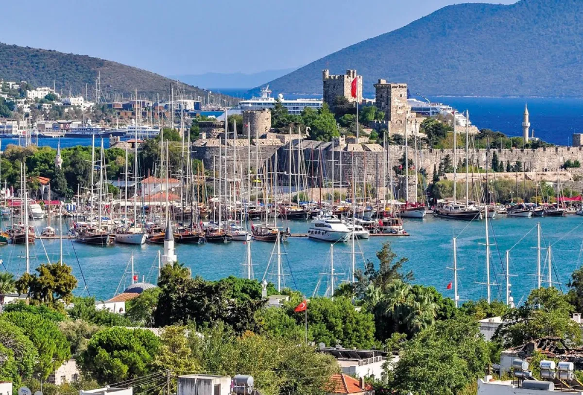 بودروم ساحل سياحي حيوي يقع في محافظة "موغلا" بمنطقة بحر إيجه جنوب غرب تركيا، ويتمتَّع بمناخ متوسِّطي، أي بشتاء معتدل ورطب (15 درجة مئويَّة)، وصيف حار (34 درجة مئويَّة)، في أغلب الأوقات. عند السياحة في تركيا، وزيارة بودروم، لا تُفوَّت العناوين الآتية: