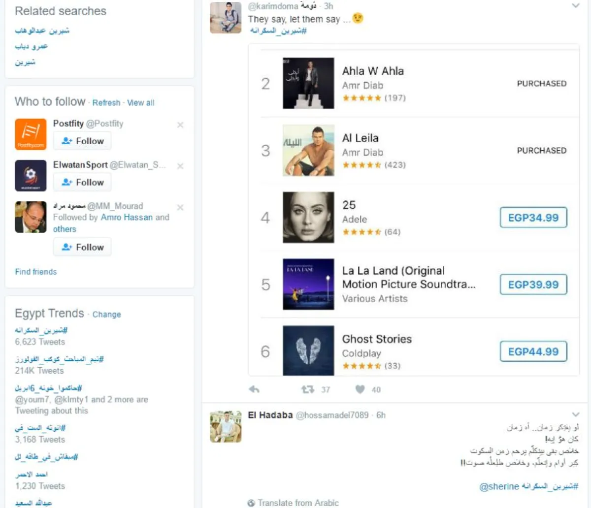 المقطع المسرّب تم تداوله طوال ليل أمس مع تعليقات مسيئة جدا لشيرين عبد الوهاب، وإعادة نشر مقاطع لها من ايام الفقر إضافة لمقاطع أخرى وهي تمدح في الهضبة، وقاد الملحن عمرو مصطفى الهجوم بتدوينة قال فيها: في نوعين من الفنانين في الدنيا الأول بيننجح له عمل أو اتنين أو ثلاثة على الأكثر وبيقول "أنا" ويقل أدبه على الأكبر منه وده لأنه فاضي الثاني بيفضل ناجح ٣٠ سنة متتالية وبيقول أنا مهما كبرت صغير الأول ده بيروح المزبلة بعد خمس إلى عشر سنوات الثاني ده بيظل التاريخ يذكره حتى بعد موته.