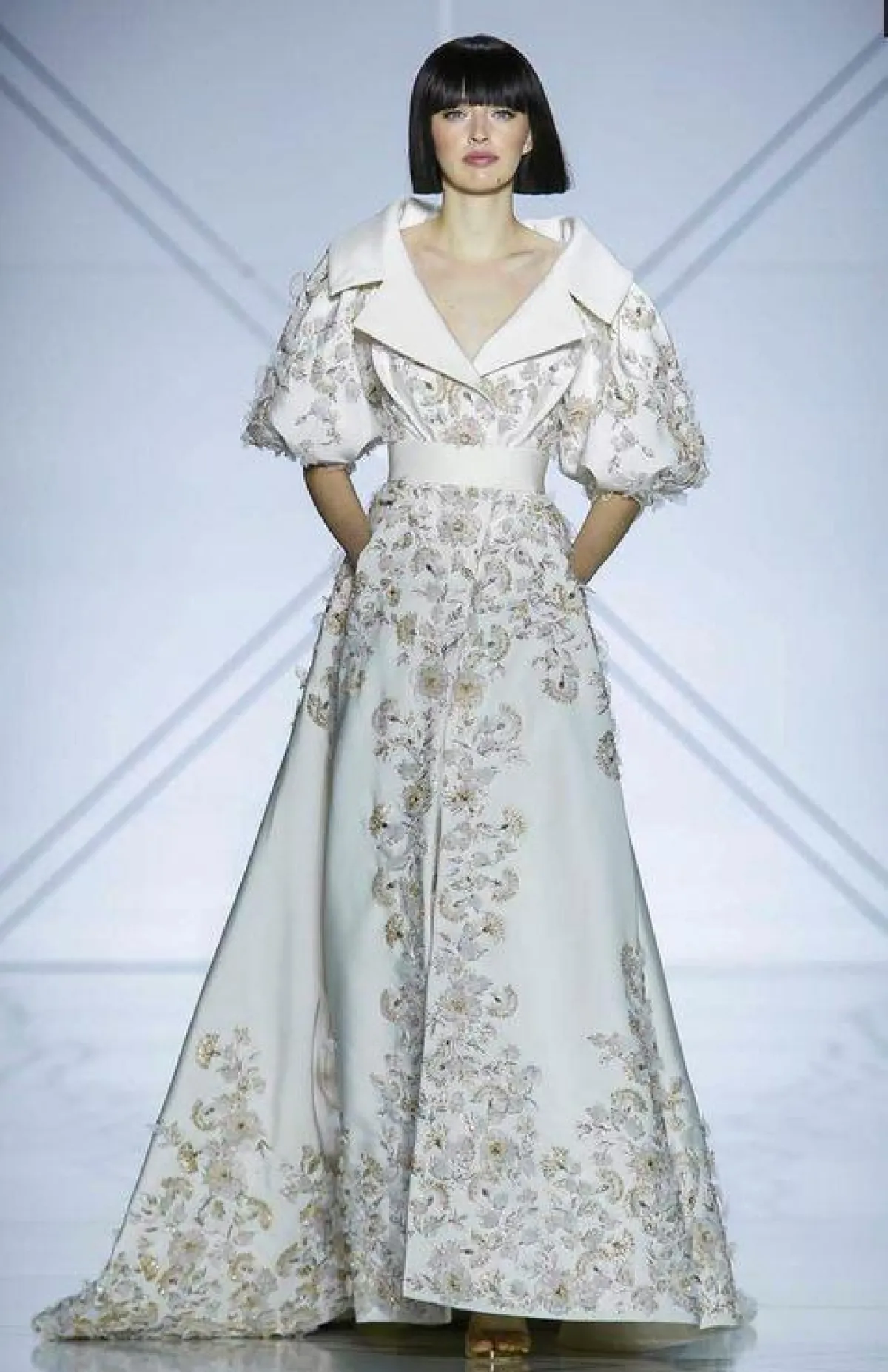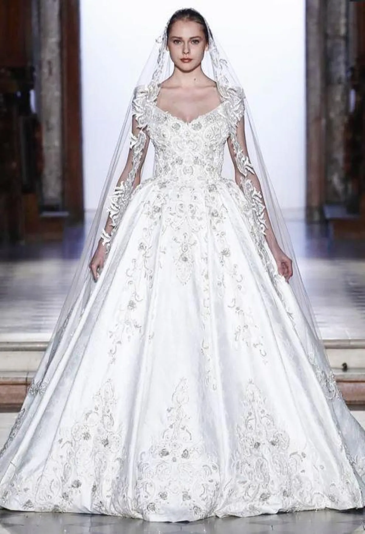 طغت تطريزات الورود النافرة على فستان زفاف جورج حبيقة لعروس ربيع 2017، واختار حبيقة الأكمام المنسدلة مع الطرحة الطويلة. يليق هذا الفستان بالعروس الجريئة التي تودّ الابتعاد عن كلاسيكية اللون الأبيض.