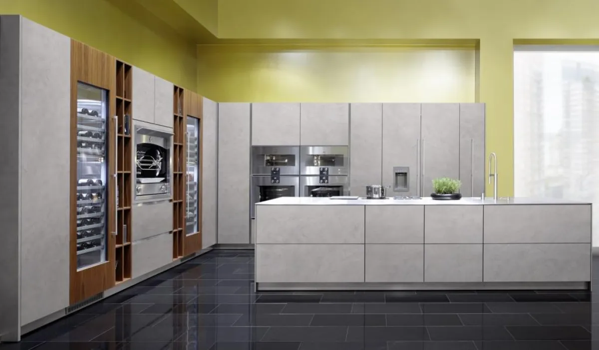 | إن جهاز البرّاد، كما جهاز الثلاجة، مدمجان في تصميم المطبخ، وكذلك الأمر بالنسبة للتجهيزات الكهربائيّة الأخرى.