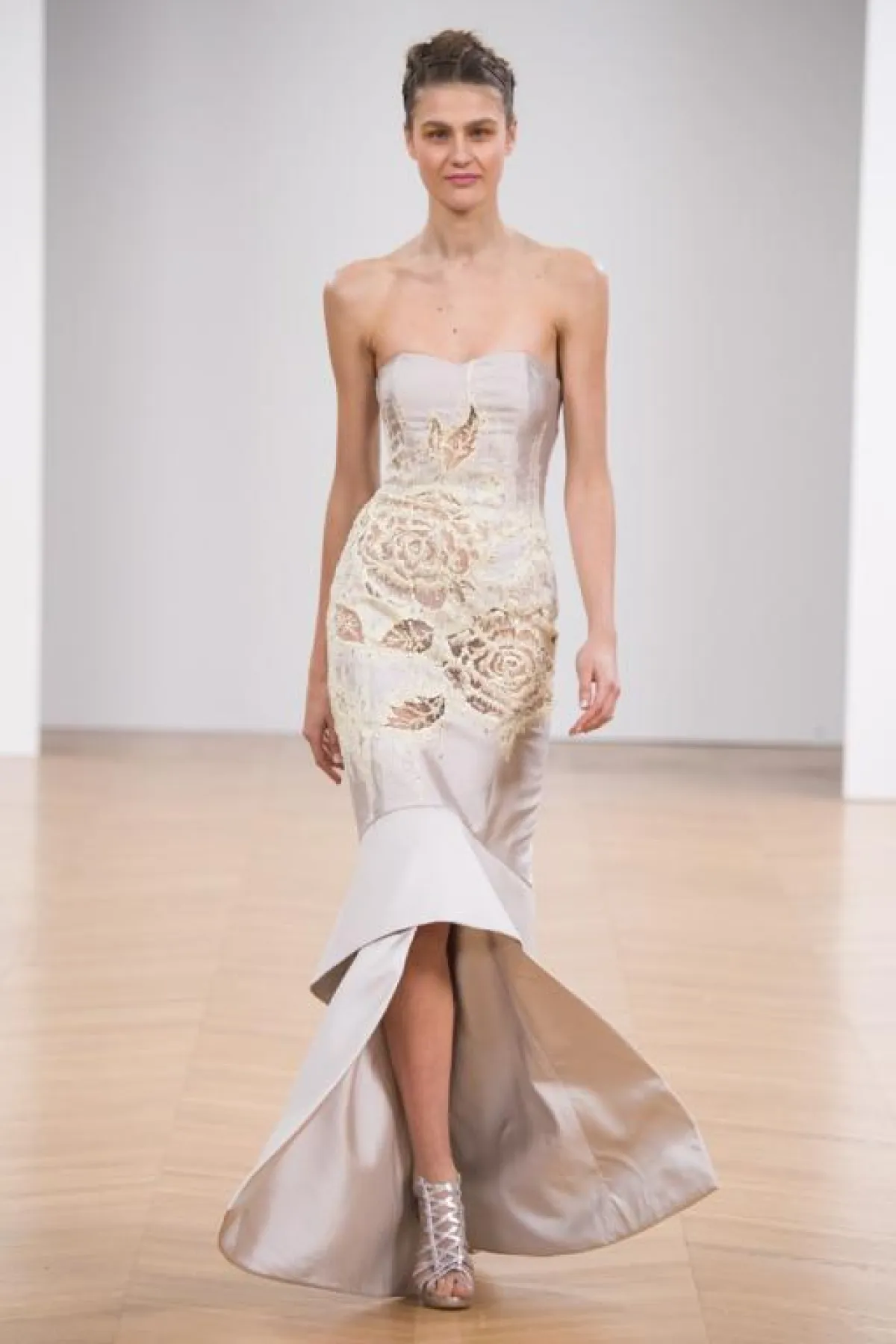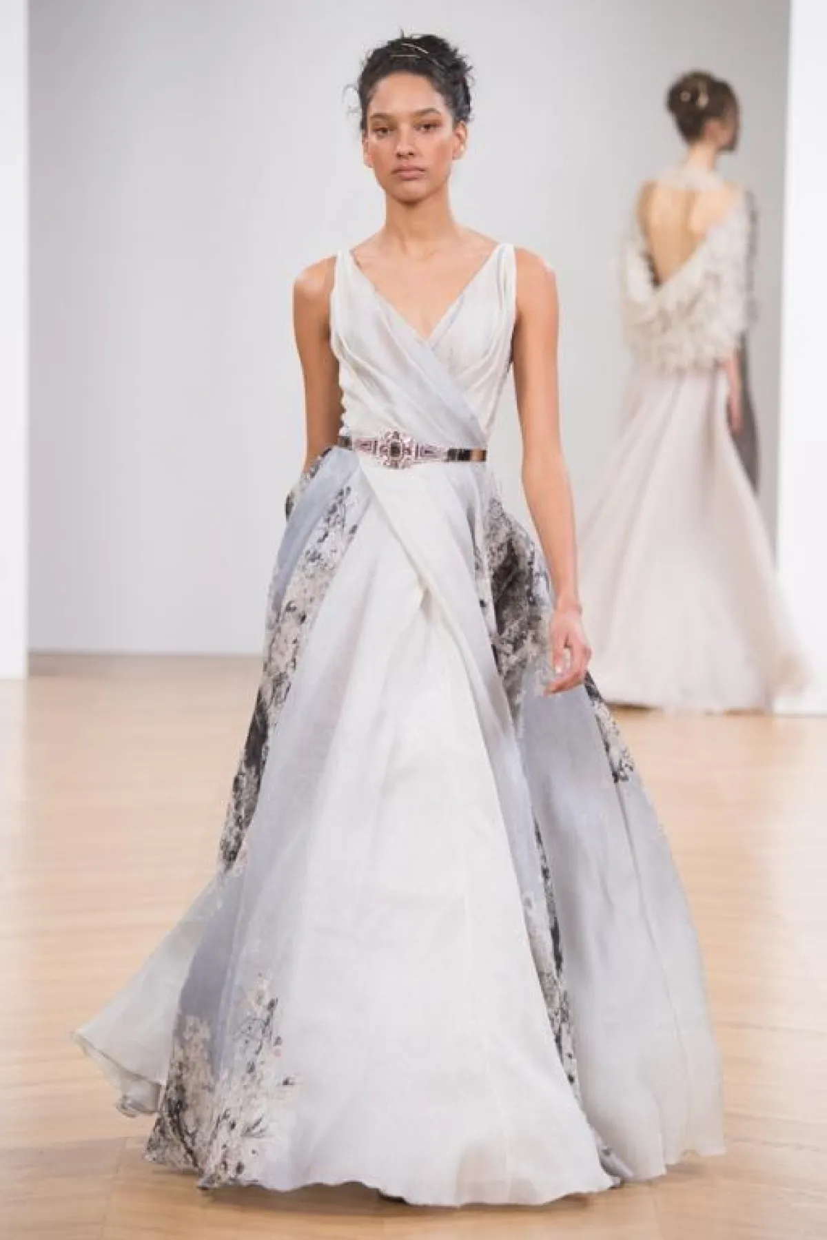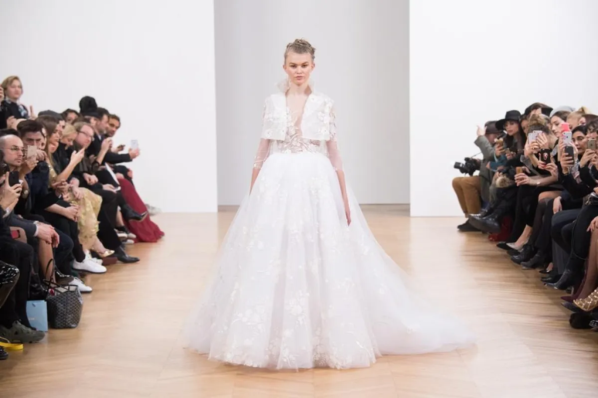 اشراقة الموسم، تنسحب الى "باليت" ألوان الـ"باستيل" الهادئة في المجموعة، فيما يتشكل فستان الزفاف الابيض، من باقة من الازهار منحته طابع رومانسياً.