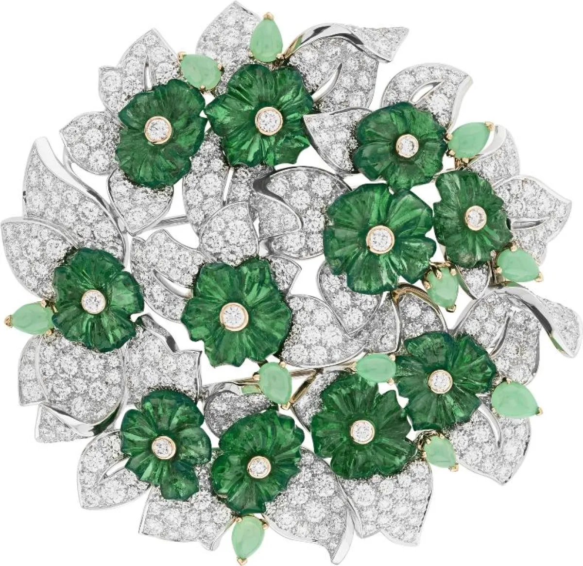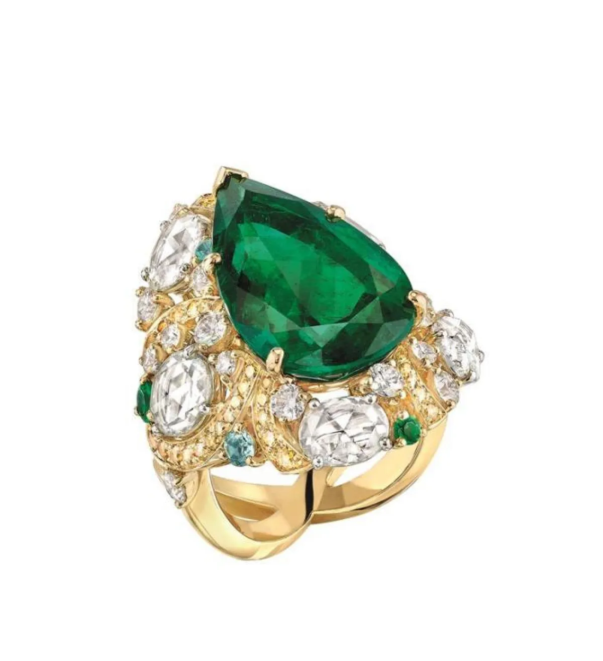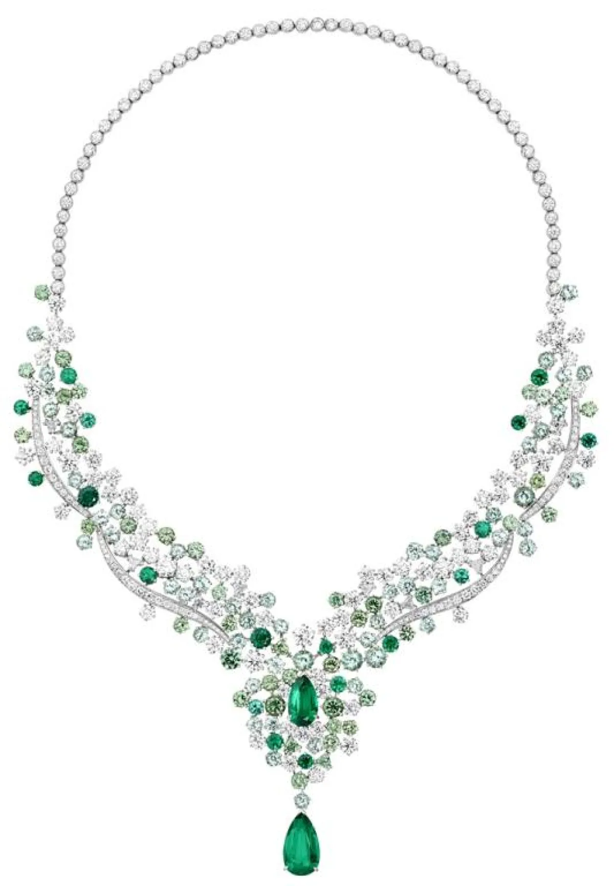 وقد قدمت دور المجوهرات العالمية العديد من قطع المجوهرات باللون الأخضر لتناسب أجواء فصل الربيع. وتنوعت هذه القطع بين خواتم مثل خاتم من مجموعة "هاي جولوري High Jewelery من بولغاري Bulgari مزين بقطعة من الزمرد. وخاتم من إيبيه ديتي Epi D’ete من مجموعة ليه بليه دو شانيل Les Blés de CHANEL من شانيل Chanel. بالإضافة إلى العقود مثل عقد من مجموعة "ذا ساني سايد أوف لايف" The Sunny Side of Life من بياجيه Piaget مزين بحبة من الزمرد. كما رأينا زينة للشعر "كليب بوكيه " Clip Bouquet من مجموعة "إميرود أن ماجيستيه" Émeraude En Majesté من فان كليف أند أربلز Van Cleef & Arpels. و قدمت ديور Dior بروش " صالون دو ديان" Salon De Diane من مجموعة " ديور آ فرساي" Dior à Versailles المصنوع من الذهب الأبيض والماس والزمرد. ناهيك عن أقراط وأساور وغيرها من قطع المجوهرات.