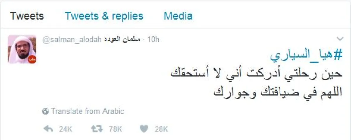 وتسابق المغردون في كتابة عبارات الرثاء والمواساة للشيخ العودة عبر هاشتاق "#وفاة_زوجة_سلمان_العودة_وابنه"، وقد رصدت "سيدتي نت" بعضاً منها، حيث كتب الدكتور تركي الحمد @TurkiHAlhamad1 : "رحمهما الله وغفر لهما.. قلبي معك فلا يدرك فقد الأهل إلا مَن عاناه.. صبرك الله ولا تنسى إنا لله وإنا إليه راجعون".