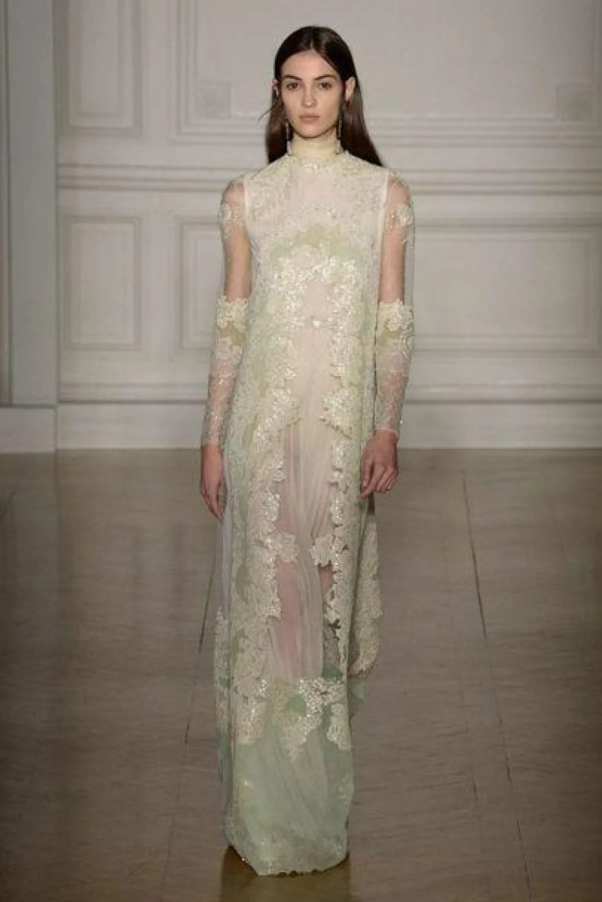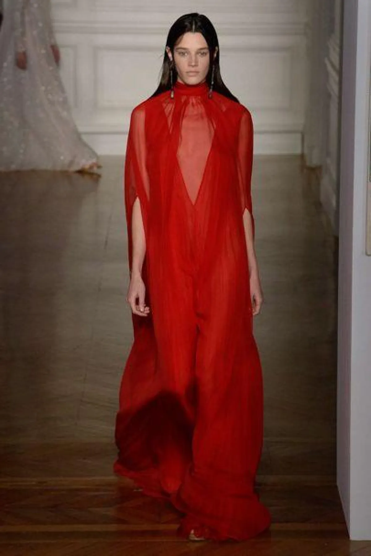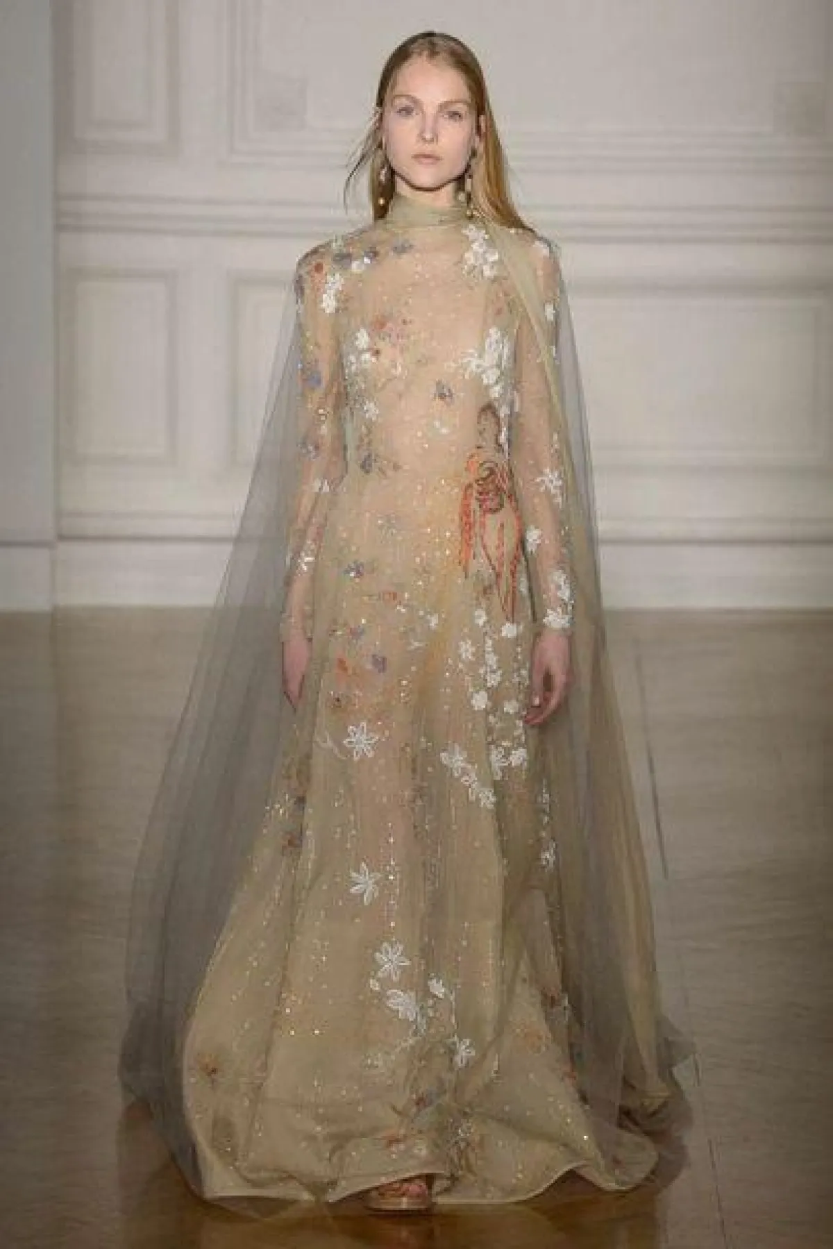 الأجواء الحالمة نفسها استمرت في عرض أزياء دار "فالنتينو" Valentino لكن التصاميم بدت أكثر رهافة وبساطة، وكان التركيز على ألوان الباستيل الهادئة بدرجات مثل البيج، والأصفر، الأخضر والزهري وطبعاً مع وجود للون الأحمر الغني الذي يعتبر من رموز دار "فالنتينو" Valentino، وقد زينت الأقمشة برسومات أو تطريزات الورود الناعمة.