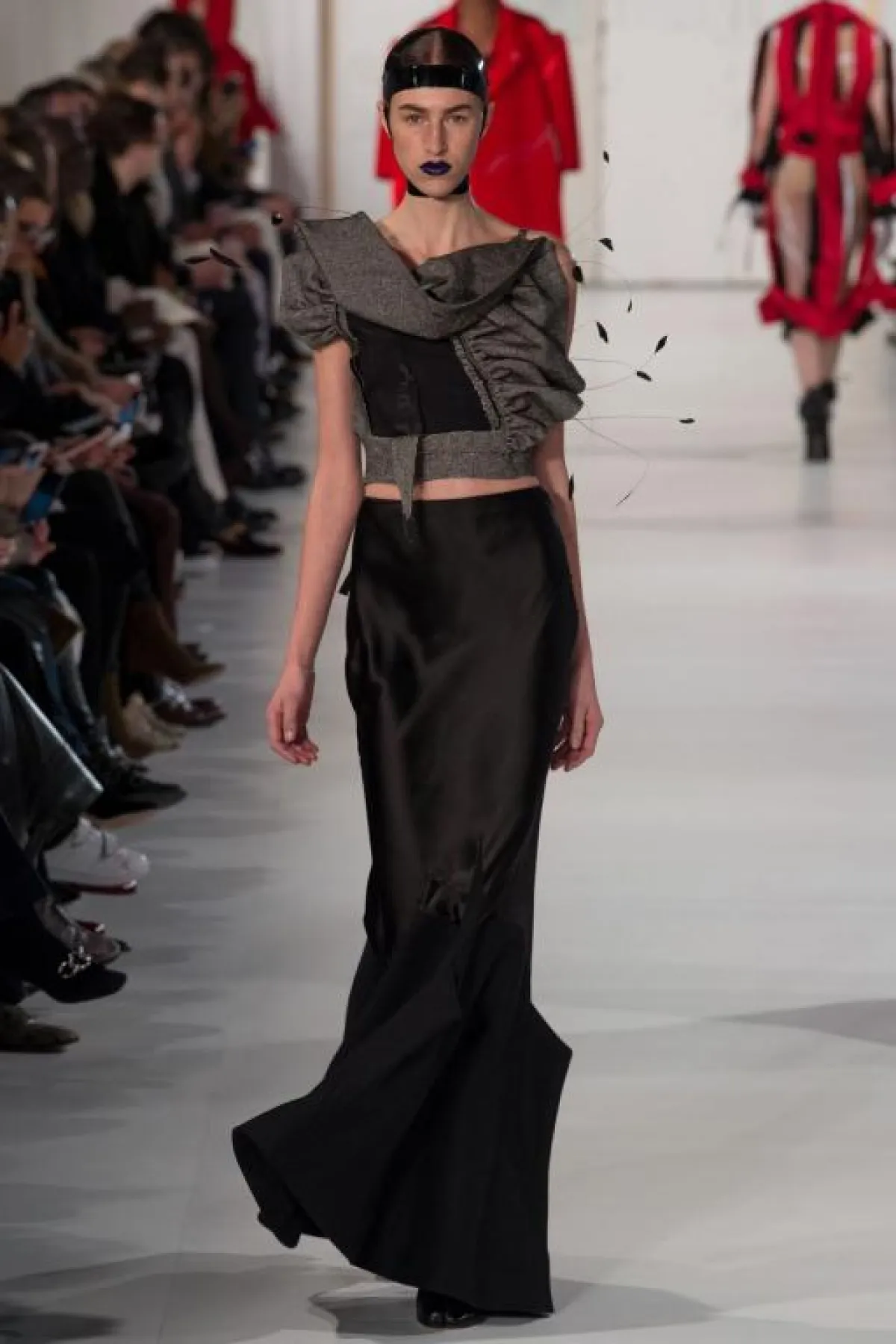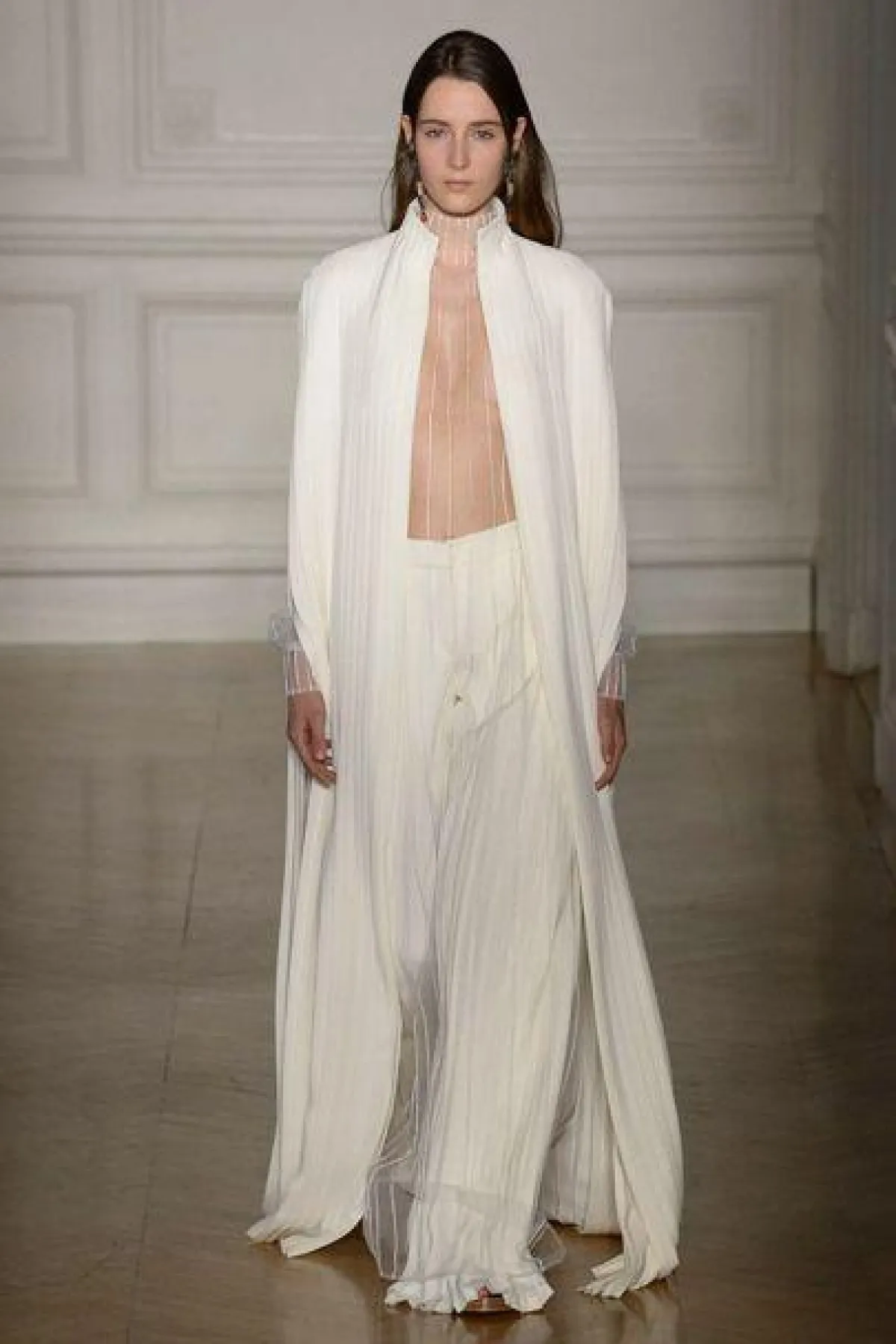 وتابعنا مع الأجواء المسرحية الدراماتيكية في عرض أزياء "ميزون مارجيلا" Maison Margiela حيث قدم "جون غاليانو" John Galliano مجموعة متنوعة غلب عليها الطابع المسرحي، وبدت القطع أشبه بأعمال فنية ولاسيما المعطف الأبيض –الذي أحدث ضجة كبيرة على مختلف وسائل التواصل الاجتماعي يوم أمس- المزيّن برسمة لوجه فتاة باللون الأسود قام بتنفيذها الفنان "بينجامين شاين" Benjamin Shine وغطيت بطبقة من التول الأسود.