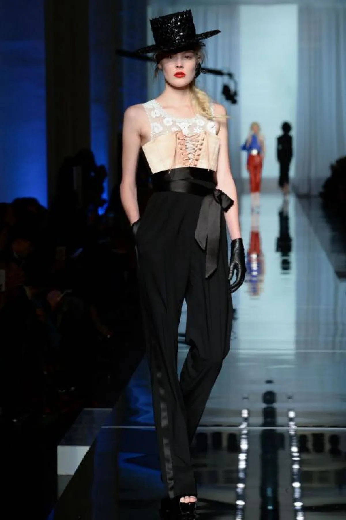 بعد عرض دار "فالنيتنو" Valentino كان لنا وقفة عند عرض مجموعة "جان بول غوتييه" Jean Paul Gaultier والذي كالعادة نقلنا بأجواء العرض الصاخبة والمرحة الي أزمنة وأجواء مختلفة فتارة شعرنا أننا في حقبة الثمانينات مع الأكتاف العريضة والألوان الصاخبة، وتارة عشنا الأجواء الباريسية الأصلية وطبعاً المزيج الأنثوي الذكوري المفضل بالنسبة لـ "غوتييه" Gaultier كان حاضراً وبقوة أيضاً، مع تصاميم زينتها طبعات الورود.