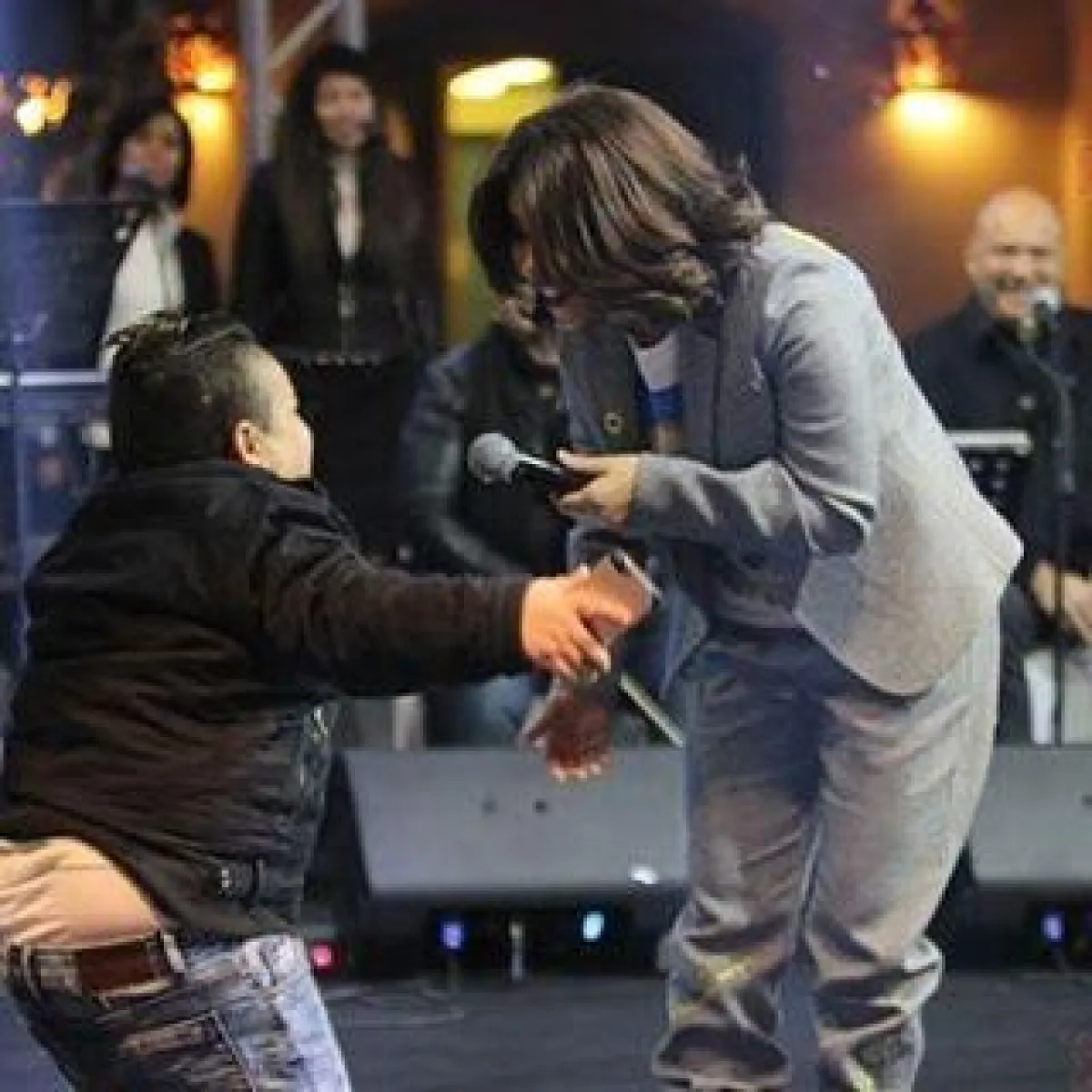 وفي لمسة إنسانية، داعبت شيرين شاباً في جسد طفل يُدعى حمودة، وعمره 16 عاماً، ويعمل في مجال التمثيل، فطلبت منه الصعود إلى المسرح ومازحته عندما علمت سنّه، وطلبت منه الزواج، وطالبته بمشاركتها في عمل فني وغنّت له أغنية حمودة.