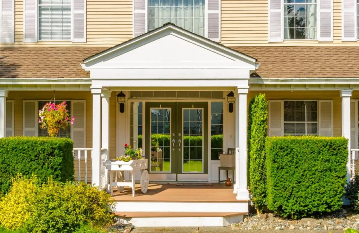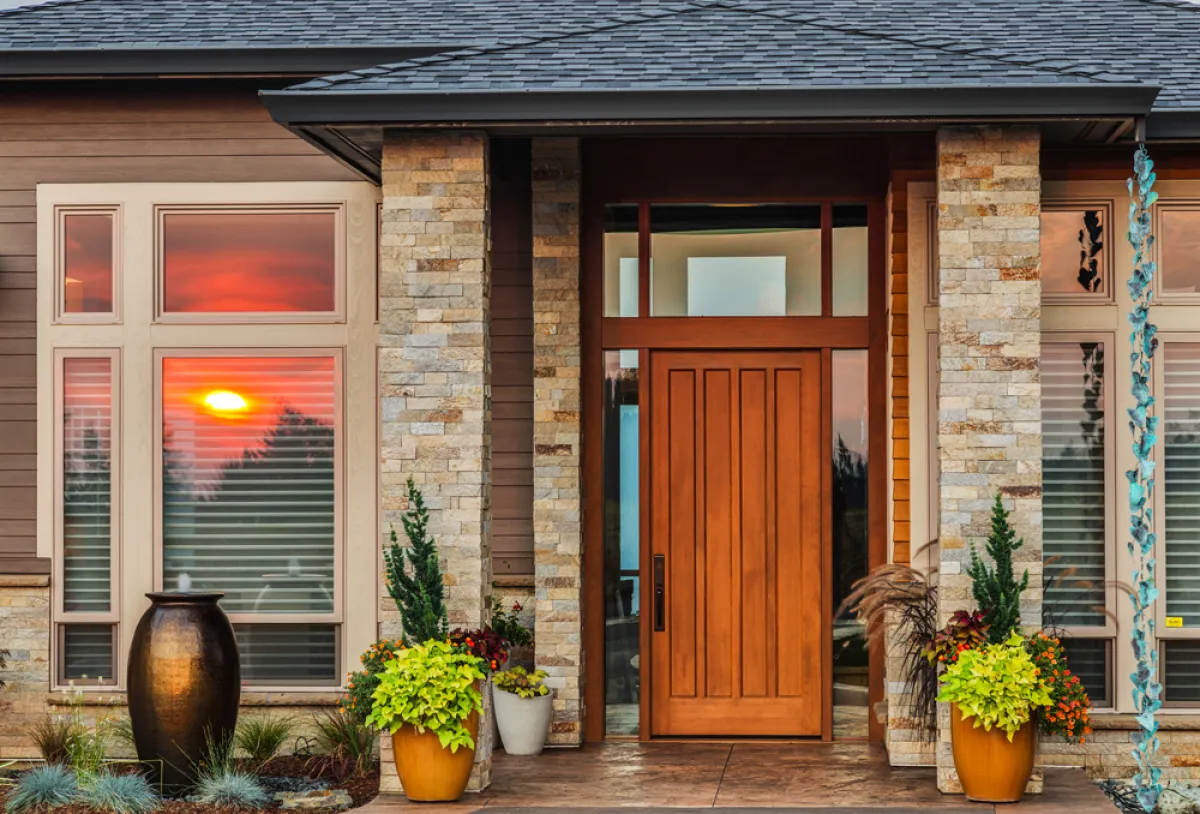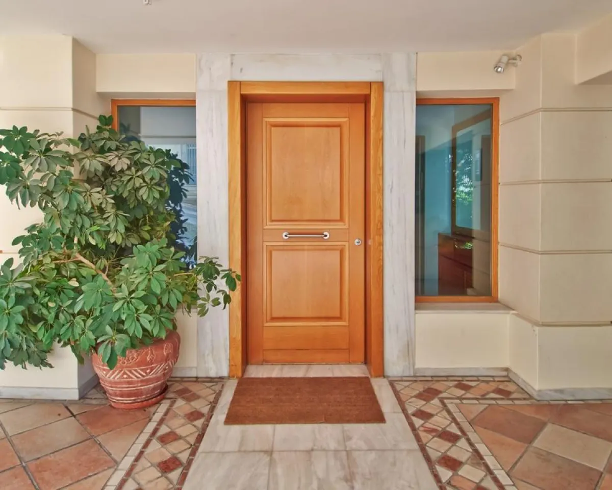 | يُستحسن أن يتماشى شكل الباب الخارجي، مع الديكور الداخلي للمسكن.