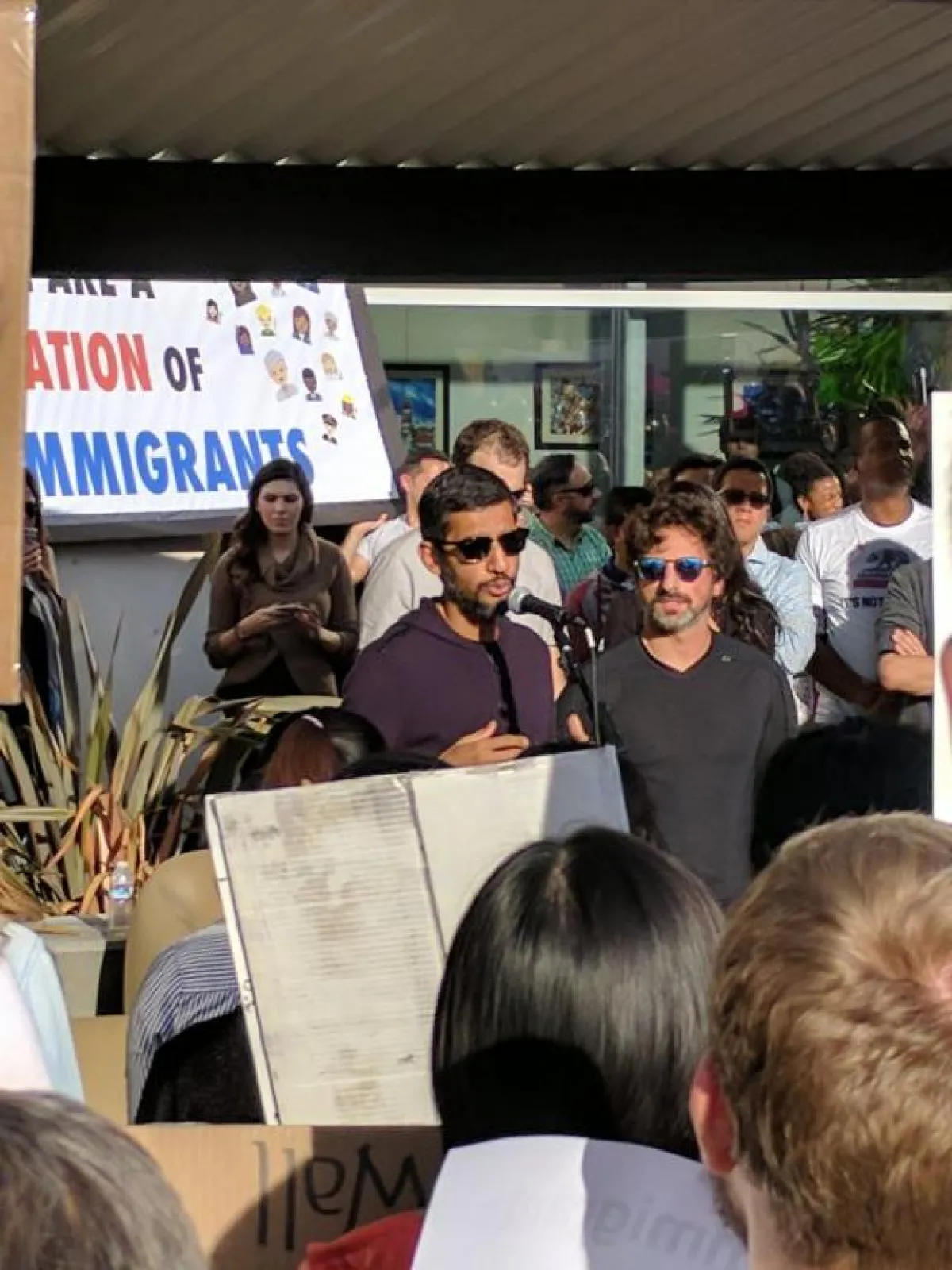 وتحدث خلال الاحتجاج عدد من المشاركين منهم سيرجي برين، أحد المشاركين في تأسيس جوجل، وهو مهاجر من روسيا.