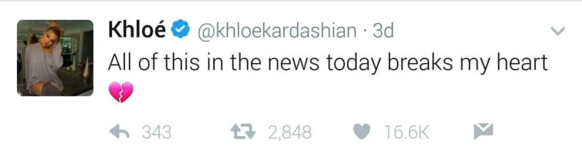وفي الوقت عينه، ردّت كلوي كارداشيان khloe Kardashian شقيقة كيم، على قرار حظر المهاجرين عبر الموقع ذاته، فغرّدت أنَ : "كل ما في الأخبار اليوم يحطَم قلبها".