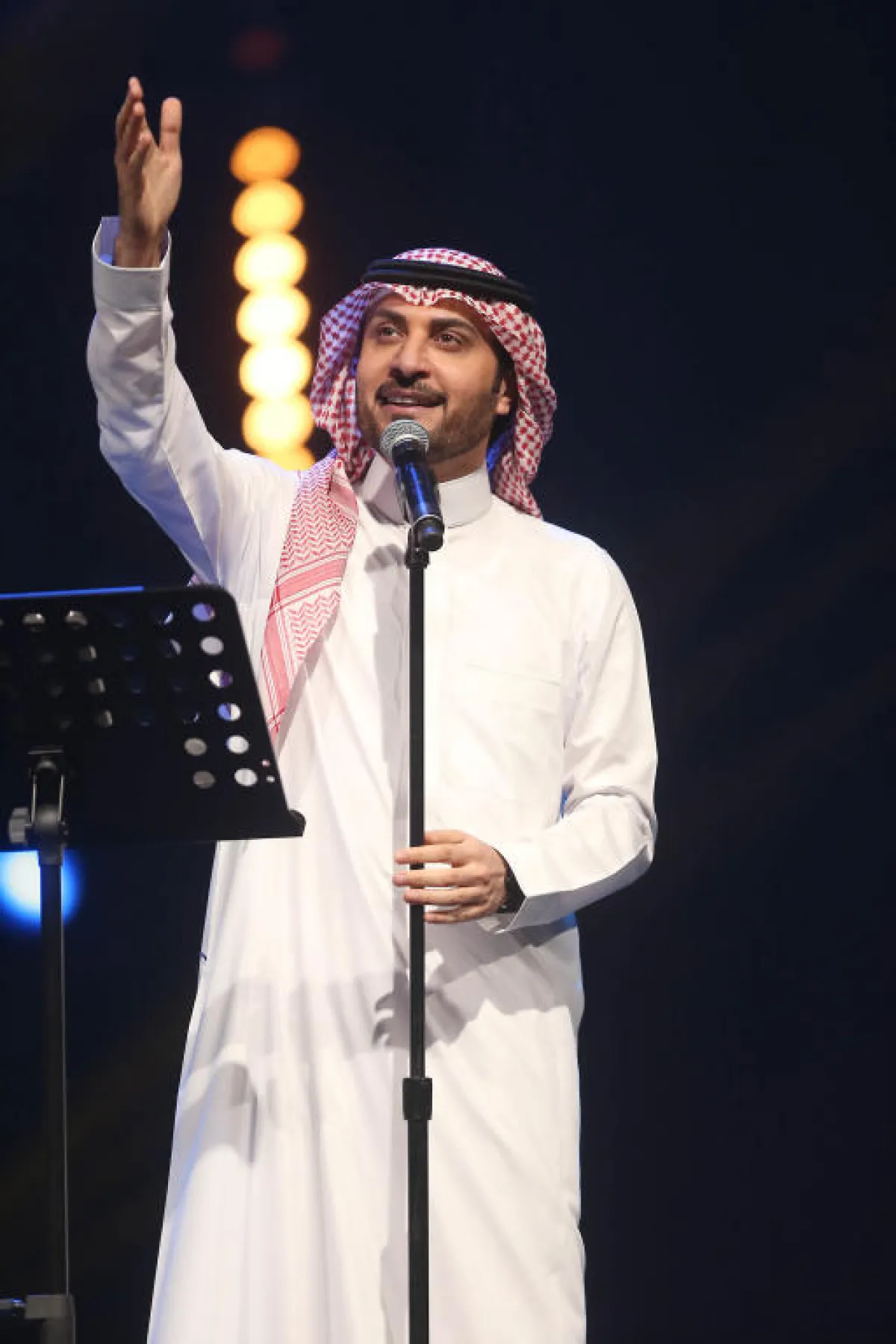 مع صعود قائد الفرقة المايسترو وليد فايد إلى المسرح وإعلان الإذاعيين خالد عبد العزيز ويزيد الراجحي (من راديو روتانا أف أم) عن اسم الفنان محمد عبده وإطلاته على المسرح حتى تعالت أصوات الجماهير مرحبة به، مع بدء عزف الموسيقى، لينطلق الفنان محمد عبده ويشدو بتسع أغنيات هي: "صوتك يناديني"، "أخت النهار"، "هيا معي"، "يا راحلة"، " الله عليها عودت- مزعلة النسا"، "أرفض المسافة"، "أشوفك كل يوم وأروح"، "إختلفنا"، وختمها بالأغنية الوطنية الشهيرة "فوق هام السحب"، والتي تفاعل معها الجمهور وردّدها مع الفنان محمد عبده، الذي قام برمي عقاله للجمهور تجسداً عن حالة المحبة الكبيرة بينه وبين جمهوره .