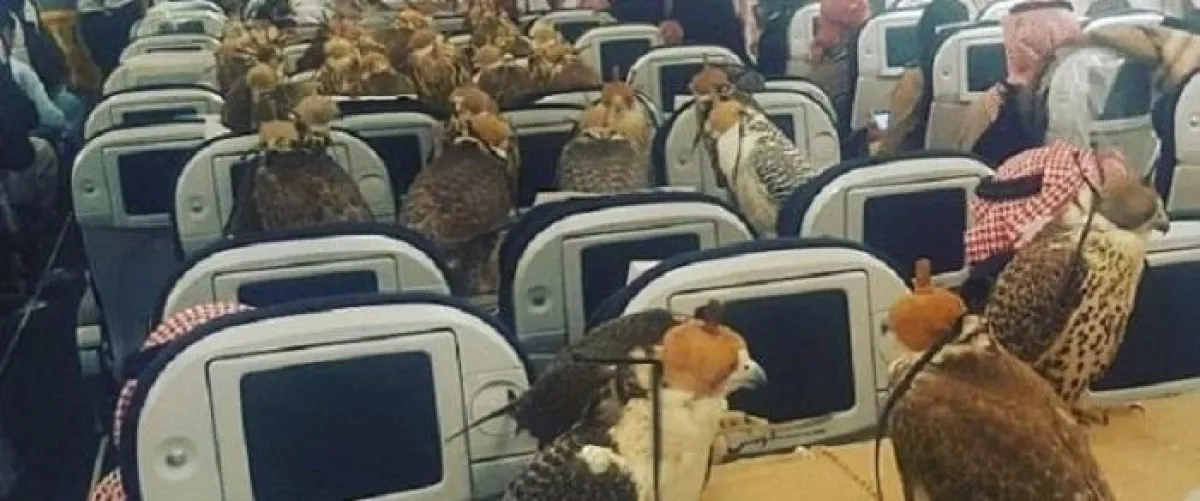 وتعتبر الصورة التي وصفتها الصحف الأجنبية بالغريبة، هي أمر شائع لدى الخليجيين وأهل السعودية بشكل خاص، حيث يسمح نظام بعض خطوط الطيران الخليجي للراكب بحجز مقعد للطيور الجارحة.