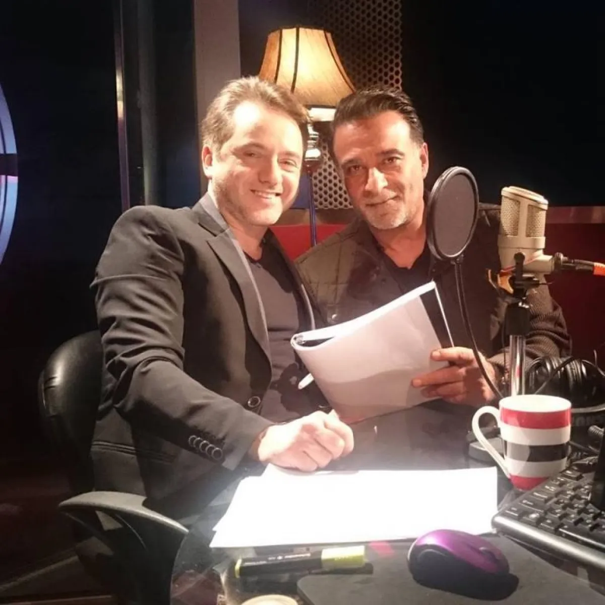 مروان خوري والممثلة اللبنانية ماغي بو غصن في الاستديو خلال عمل فني مشترك.