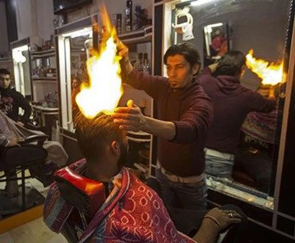 حلاق فلسطيني يشعل النار برؤوس زبائنه