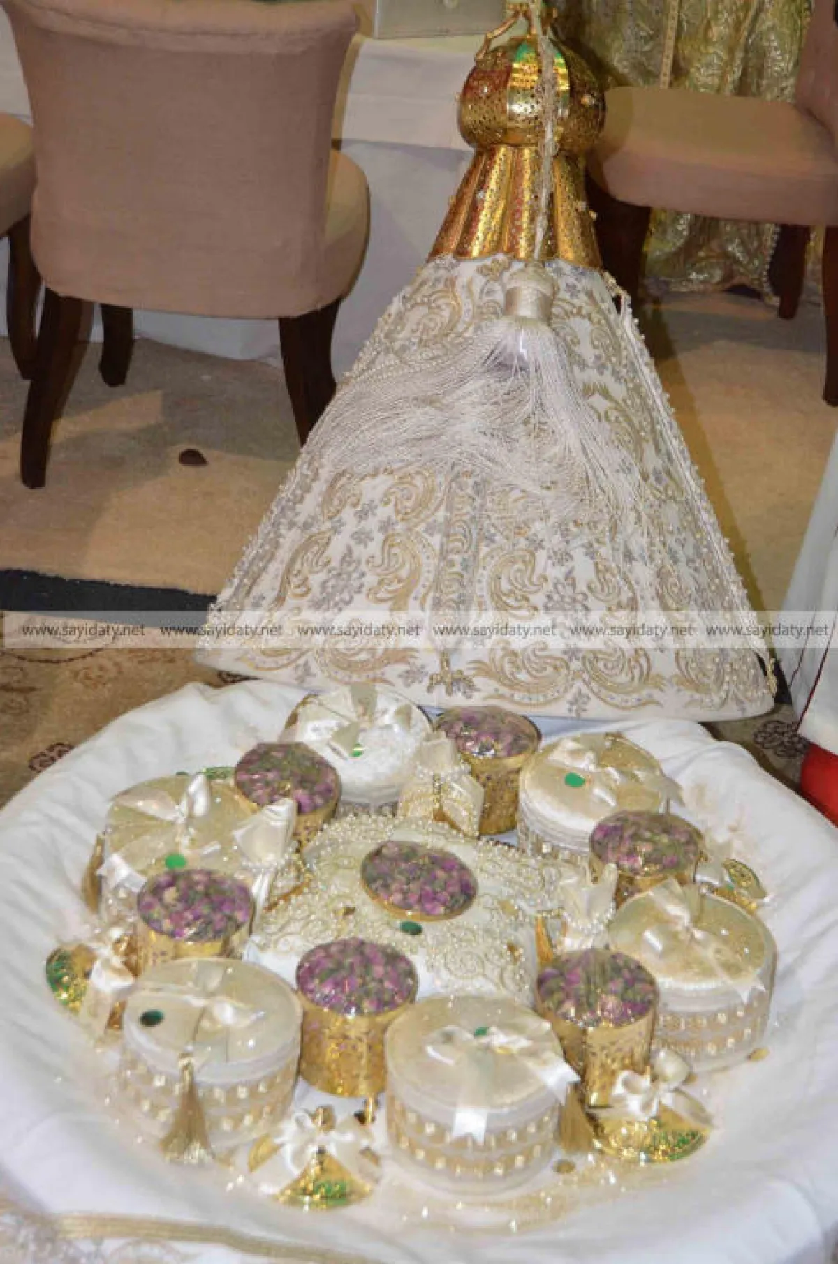 أشرف على إعداد الحفل المموّن «أفراح الرياض» بالرباط الذي اقترح عشاءً مغربياً بالبسطيلة واللحم المشوي وسلطات متنوعة إلى جانب حلويات مغربية مع كؤوس الشاي الأخضر.