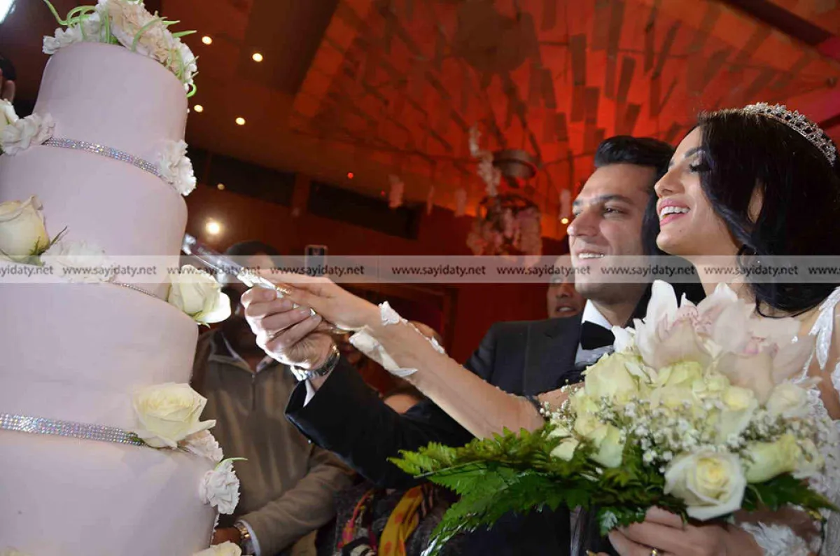وخصصت الأوركسترا فقرة للموسيقى التركية، كما قطع العروسان تورتة الزفة على نغم تركي.