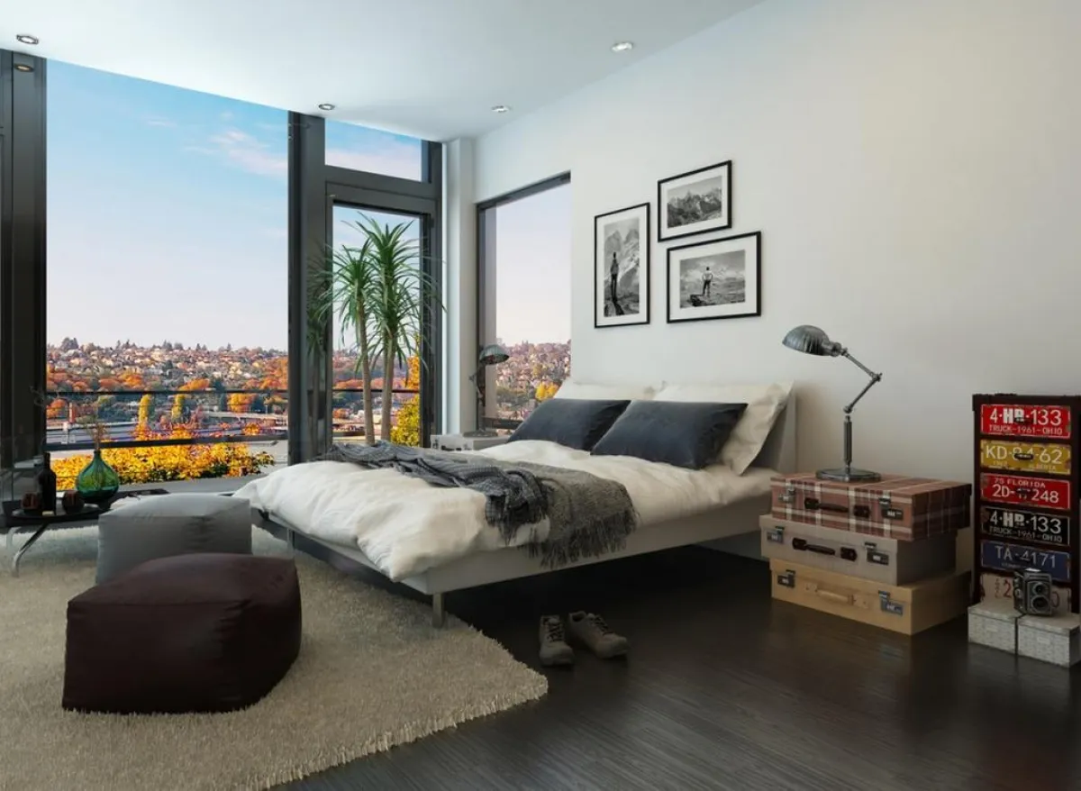 2. يحلو رصف مجموعة من شنط السفر ذات أحجام مختلفة قرب بعضها البعض بجانب السرير في غرفة النوم، على أن تلعب دور المنضدة، وأن تحمل "أباجورًا".