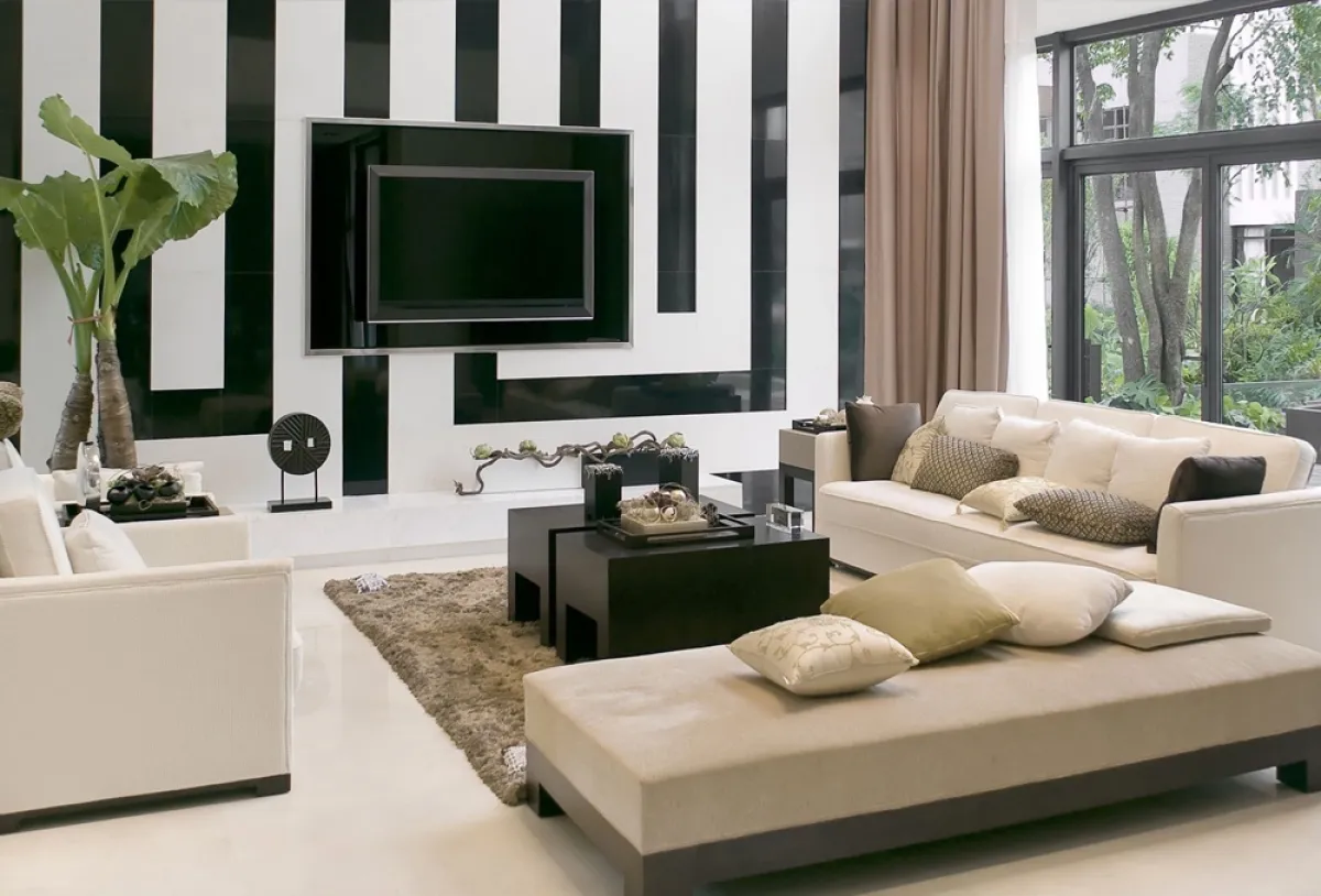 التلفاز، هو محو غرفة المعيشة، إذ تتوزّع الأرائك حوله على شكل حرف "يو". ولحامل التلفاز في "الديكورات" المعاصرة تصاميم جذابّة، وفي ما يأتي لمحة عنها:
