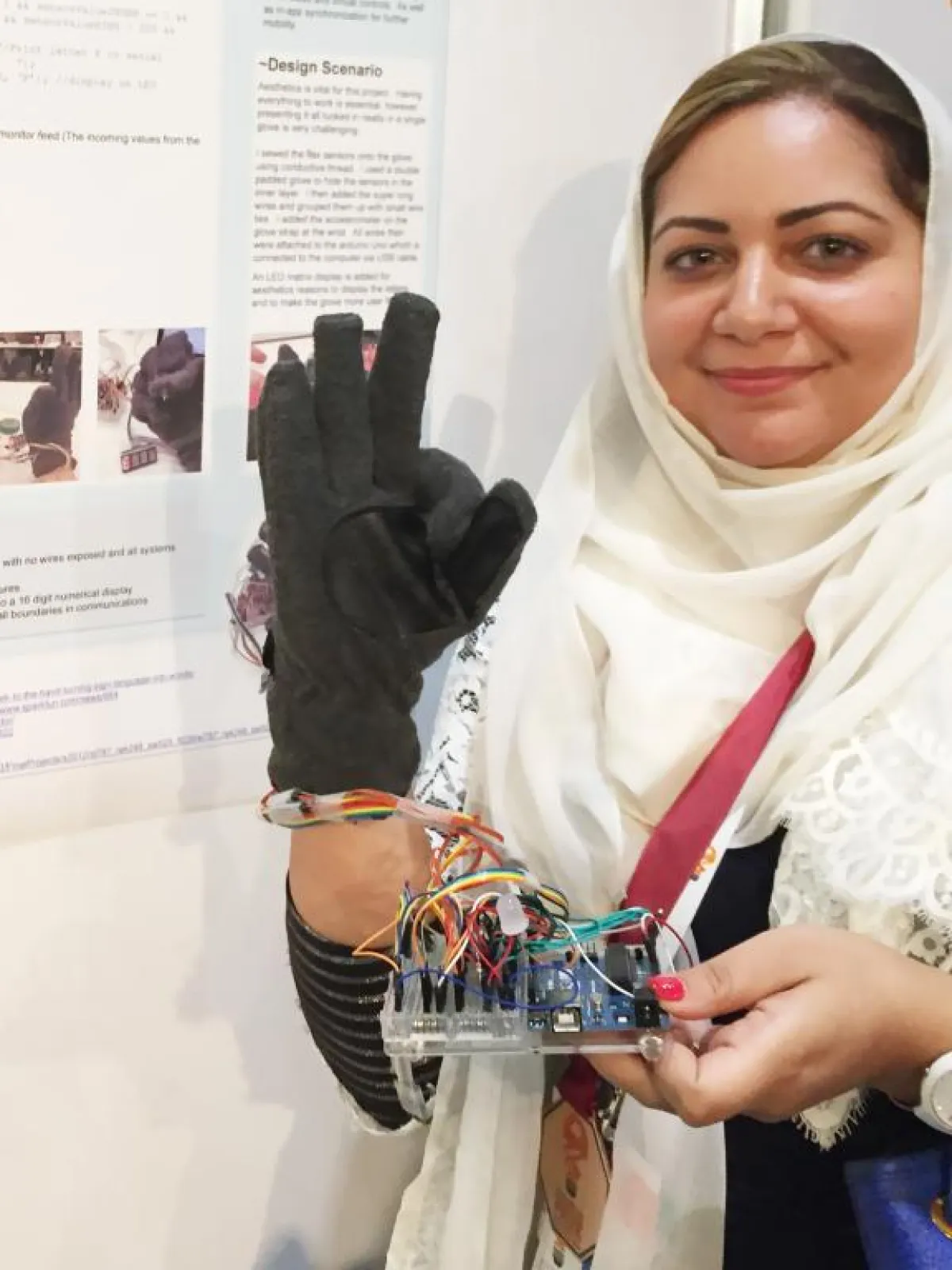 تمكنت المخترعة السعودية هديل ايوب طالبة الدكتوراة بالفنون وتقنية الكمبيوتر، في جامعة لندن من اختراع قفاز إلكترونيّ يمكنه تحويل لغة الإشارة إلى نصوص مقروءة، ومسموعة، تخدم الصمَّ والبكمَ، وتيسير تواصلهم مع المجتمع،وهو ما مكَّنها من حصد 3 جوائز عالميَّة مهمَّة.