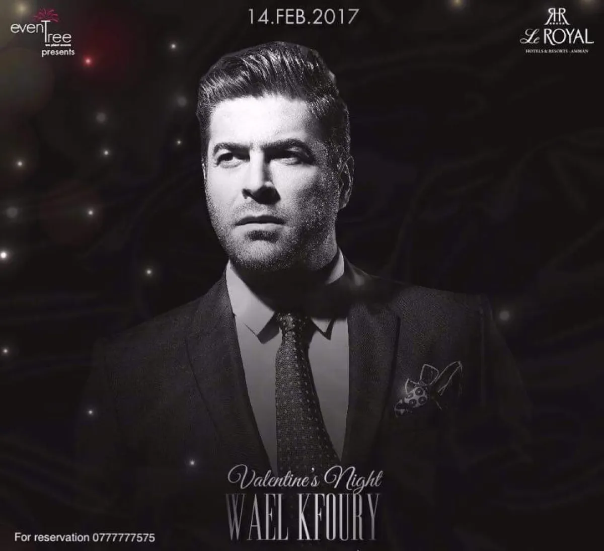 وستقام أيضاً حفلة لملك الرومانسية الفنان اللبناني وائل كفوري بعيد الحب مع عشاقه في الأردن "عمان" بفندق رويال – عمان بتاريخ 14/2/2017.