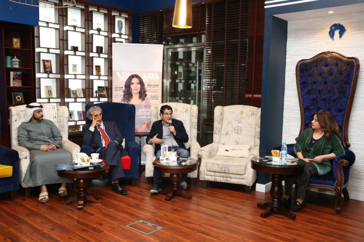 استضافت الأمسية كل من د. عبد الرحمن شرف، نائب مدير إدارة خدمة التدريب الدولي في شرطة دبي- مساعد المنسق العام لبرنامج خليفة لتمكين الطلاب، ود. لطيفة الحمادي، أستاذة النقد والأدب في كلية الدارسات الاسلامية والعربية في دبي، والمحامية والكاتبة علياء العامري، والإعلامية ومقدمة البرامج بشاير بالعبد، وهناء الشريف مديرة التنسيق والتطوير في جمعية الناشرين الإماراتيين، صاحبة مبادرة مكتبتي، وناقش المتحدثون كثير من القضايا كالمحافظة على لغتنا العربية وكيفية جعلها مواكبة للعصر، وموضوع الهوية الثقافية، وجدوى تعريب المصطلحات وتطوير المختصرات العربية أسوة باللغة الإنكليزية، وتحسين مستويات الترجمة.