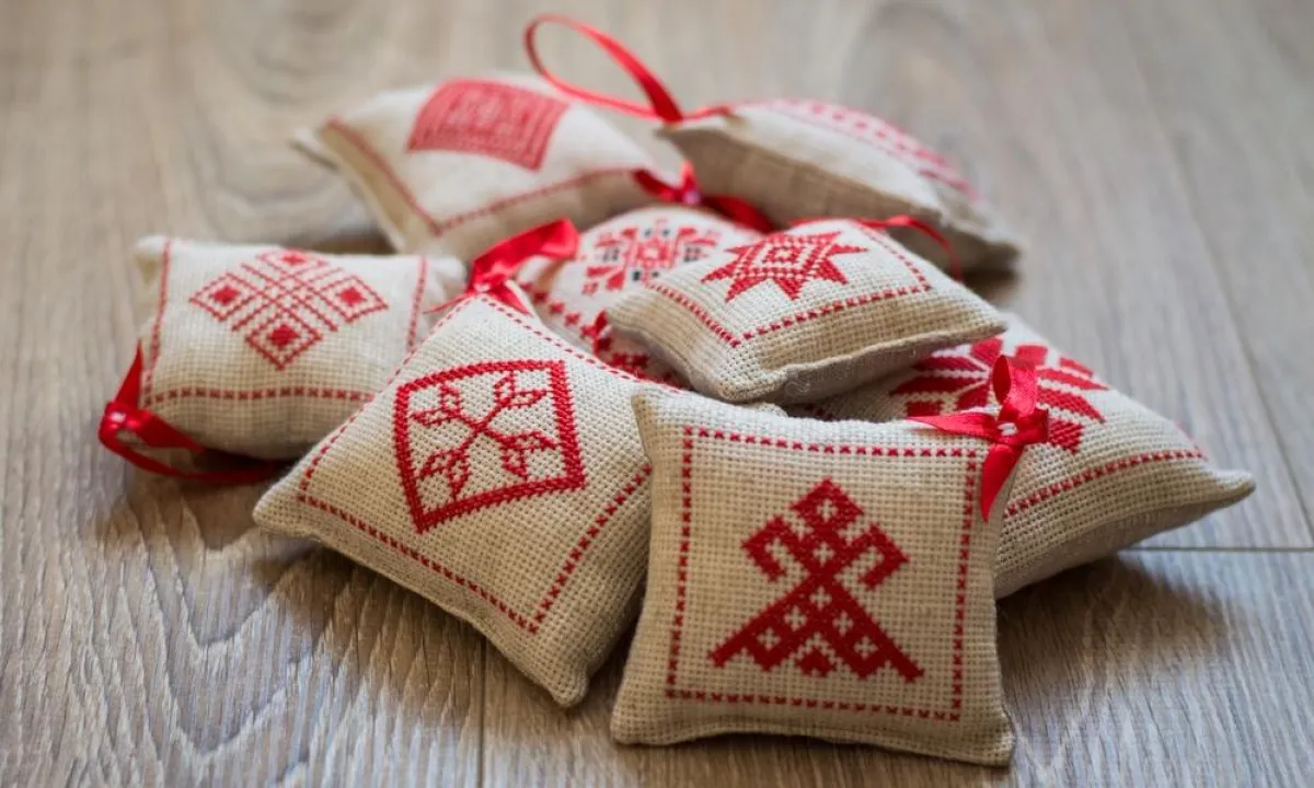 | الوسائد المُطرّزة تناسب الأرائك ذات المقاعد السادة.